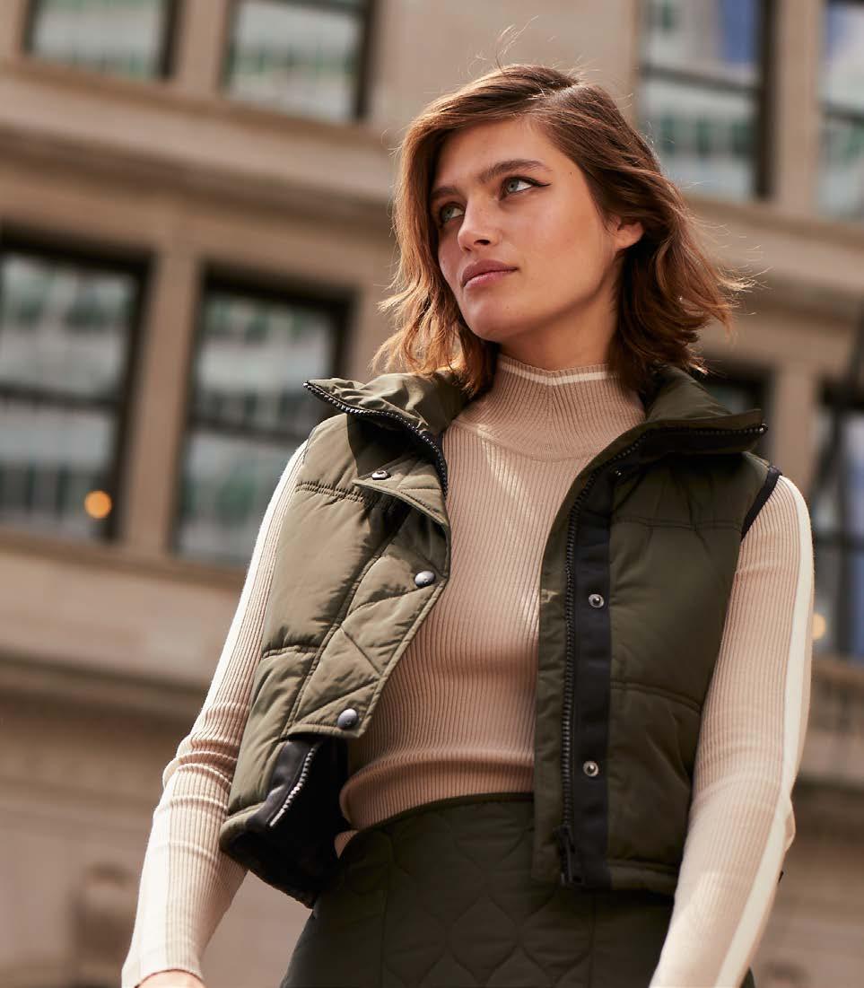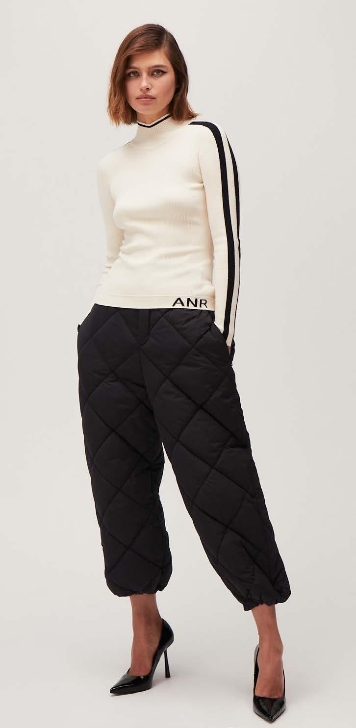 Yuki Quilted Pullover, Shale, $448 Noemi Straight Leg Pant, Charcoal, $258
