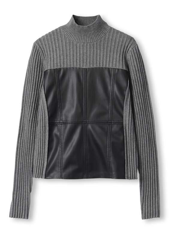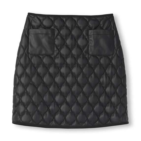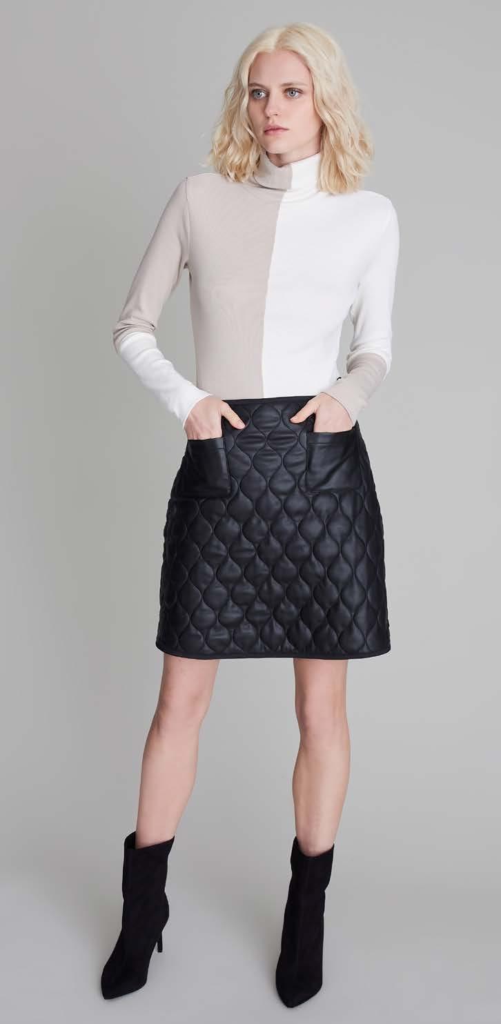 Remi Turtle Neck Shirt, Tan, $178 Kiko Quilted Skirt, Black Faux Leather $298