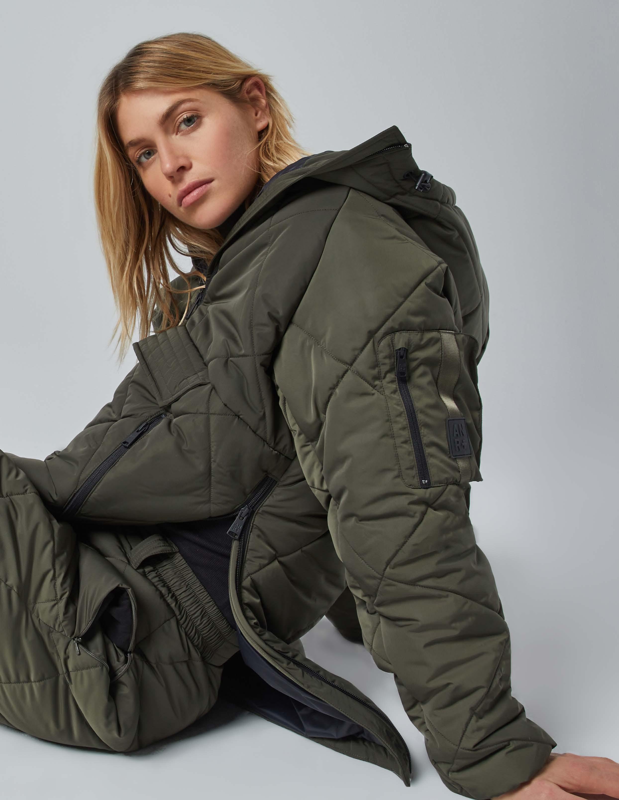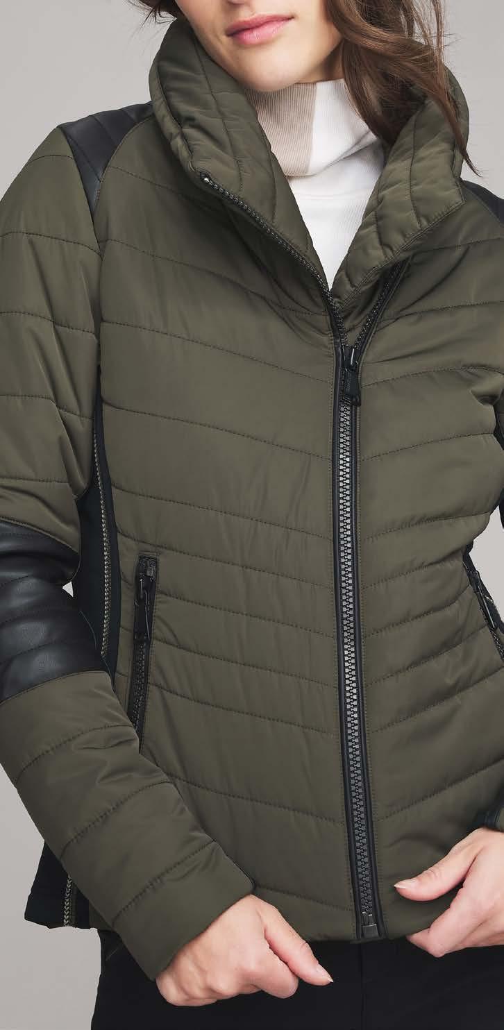 A. Yuki Quilted Pullover, Olive, $448 Mika Quilted Pant, Olive, $398