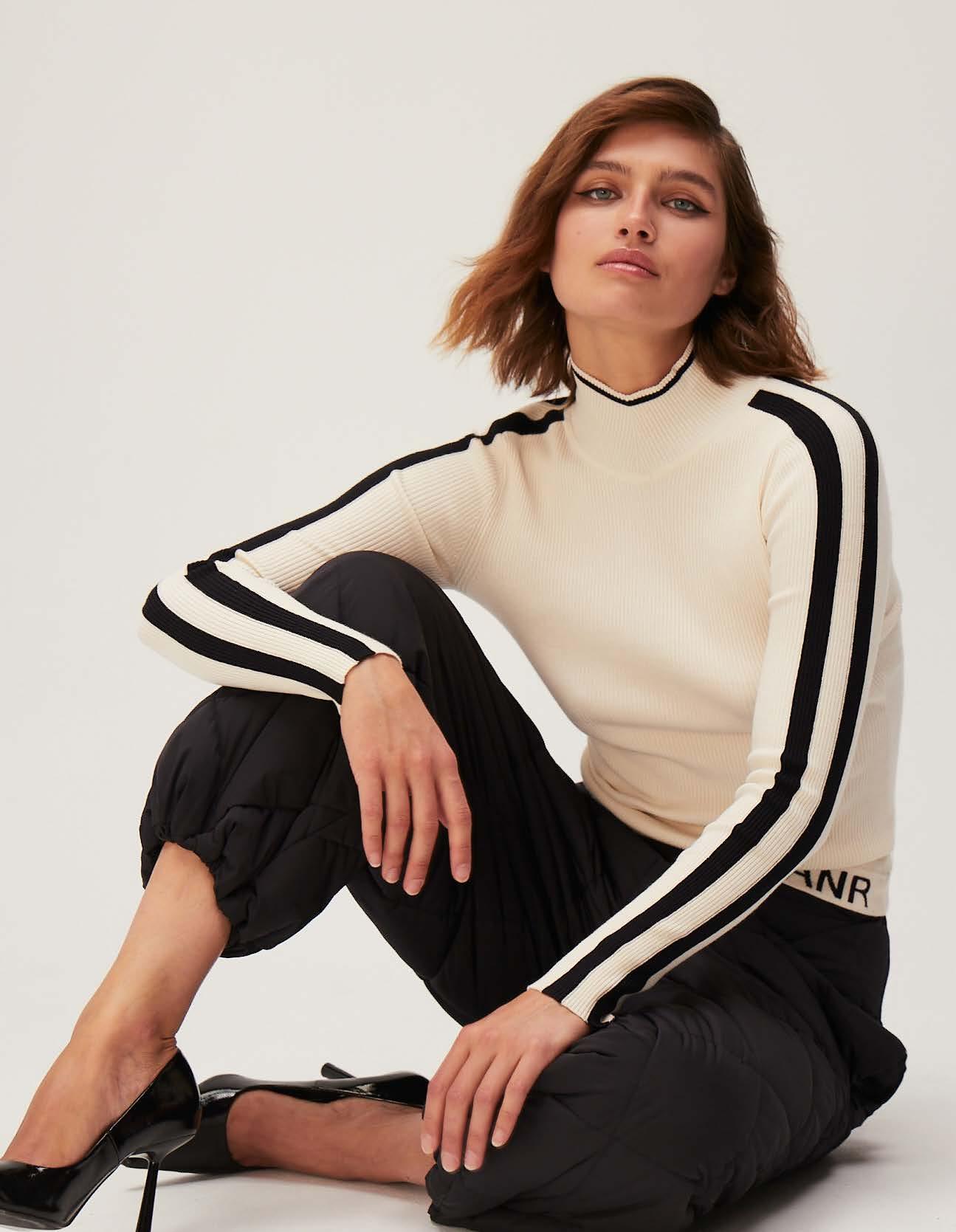 Remi Turtle Neck Shirt, Tan, $178 Geneva Pant, Black, $248