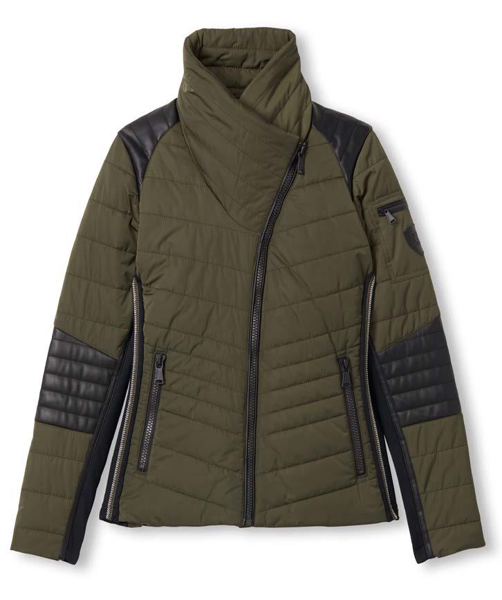Remi Turtle Neck Shirt, Tan, $178 Machina Moto Jacket, Olive, $398