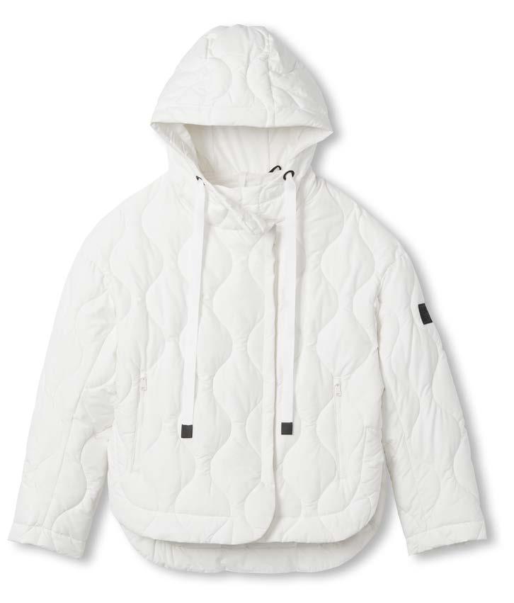 F. Insulated hood with adjustable drawcord and stopper