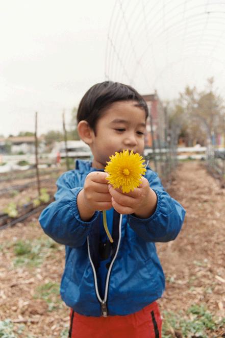 AKarenfarmer’ssonholdsupadandelion pickedfromthegardens