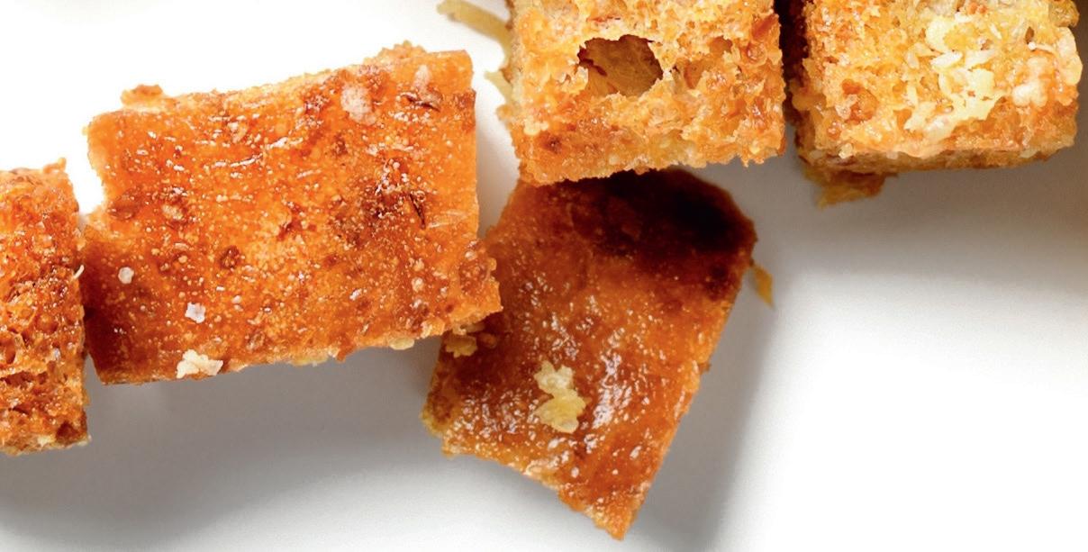 1. Prepare the watermelon by neatly dicing into approx. 10mm cubes and spreading out on a perforated gastronorm tray. Set the oven to 80C and the exhaust to maximum (or leave oven door slightly ajar).