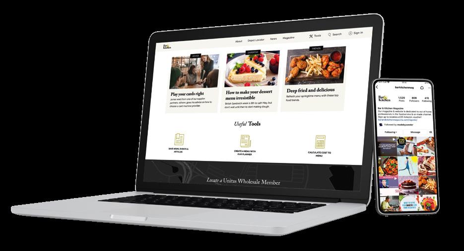 Bar & Kitchen is published by Cogent Elliott Ltd on behalf of Unitas Wholesale Ltd. All rights reserved. Reproduction in whole or part prohibited without permission. All information was correct at time of going to press. The magazine is printed in the UK by IMA Group using sustainable sources. To make a contribution to the magazine, please email editor@ barandkitchenmagazine.com