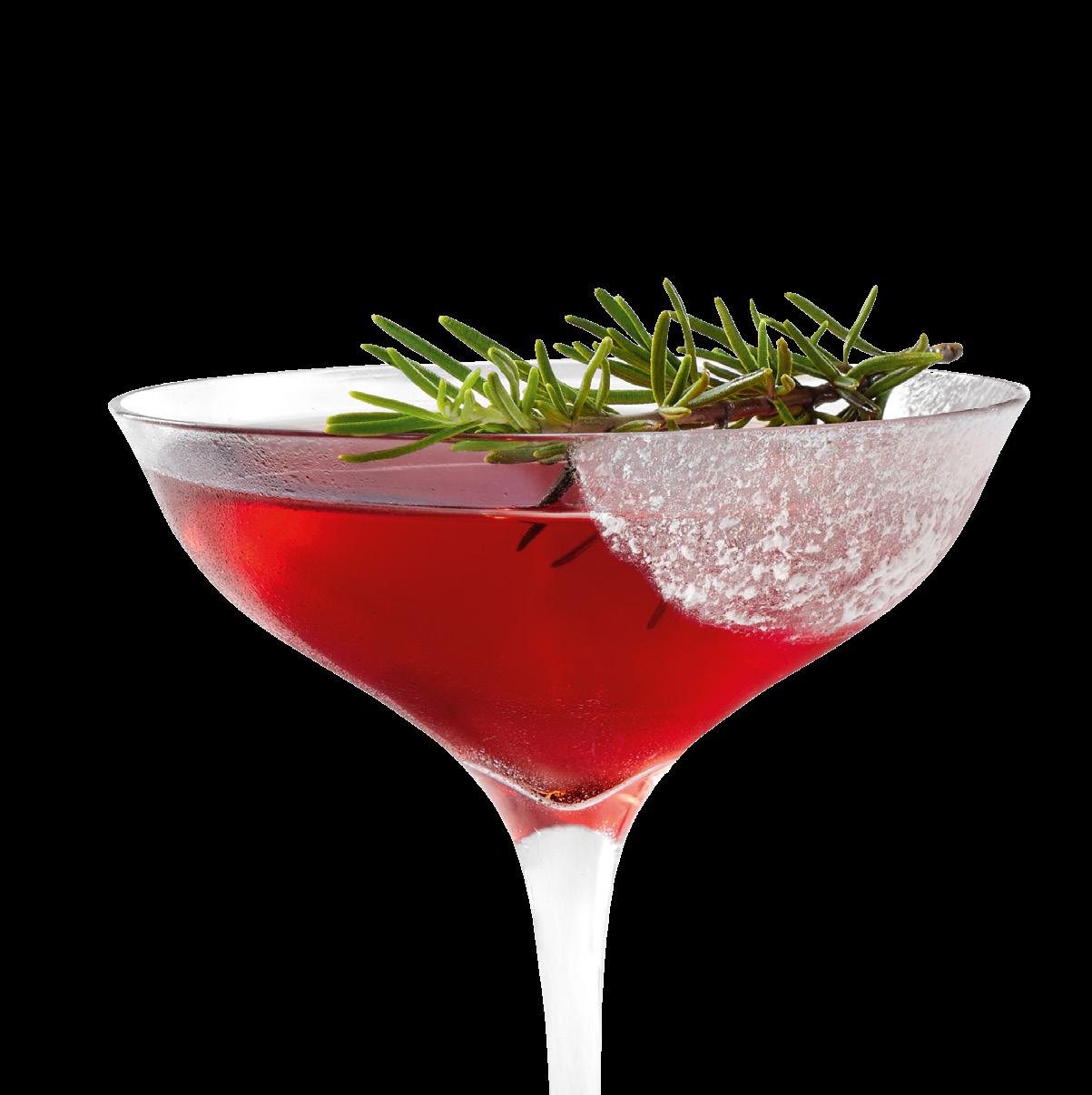 Rim the side of a cocktail glass with icing sugar. Pour the ingredients into a cocktail shaker. Shake with cubed ice and strain into cocktail glass. Garnish with a sprig of rosemary.