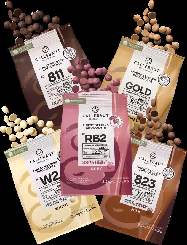 Premium flavour meets workable genius with Callebaut’s famous range of Belgian Gourmet chocolate for perfect results every time. Whatever the flavour or dessert you’re preparing, these core five flavours guarantee delicious, decadent indulgence. The 811 Dark Chocolate, a classic, easy-to-use couverture dark chocolate, is perfect pure, in tablets and other preparations while 823 Milk Chocolate is a chef’s Belgian milk chocolate favourite for confectionery and pastry. Hints of vanilla alongside light caramel notes create an irresistible milky medley in Callebaut’s W2 White Chocolate. The wow factor doesn’t end there. Ruby and Gold Chocolate from NEW RB2 and GOLD bring berry and salty butter caramel vibes to the best tables.