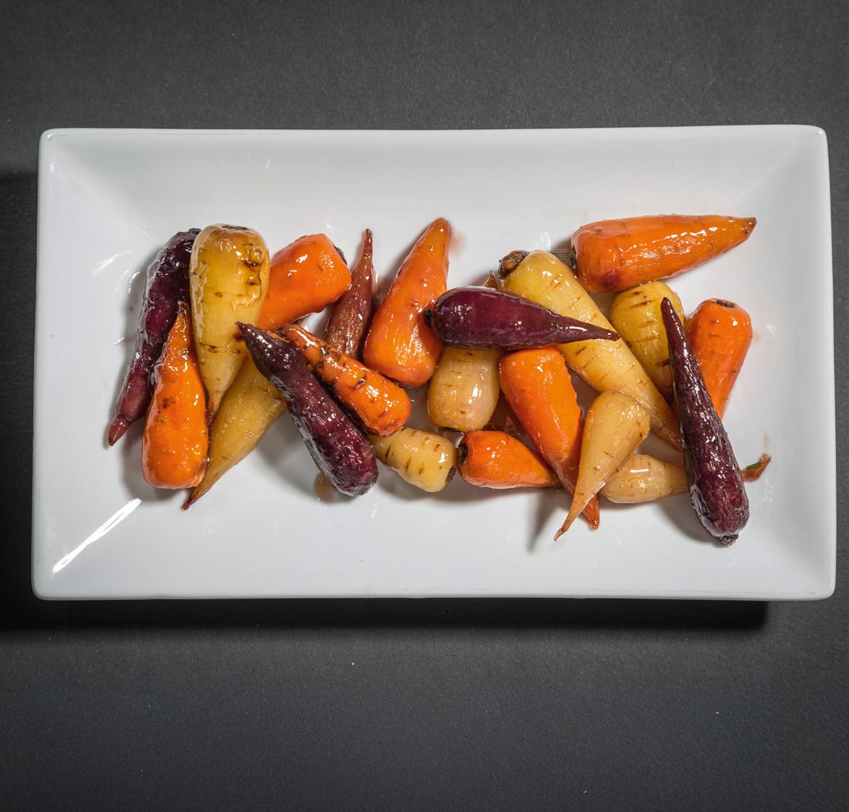 1. Place the carrots in a roasting tin and drizzle with olive oil. Roast until tender.