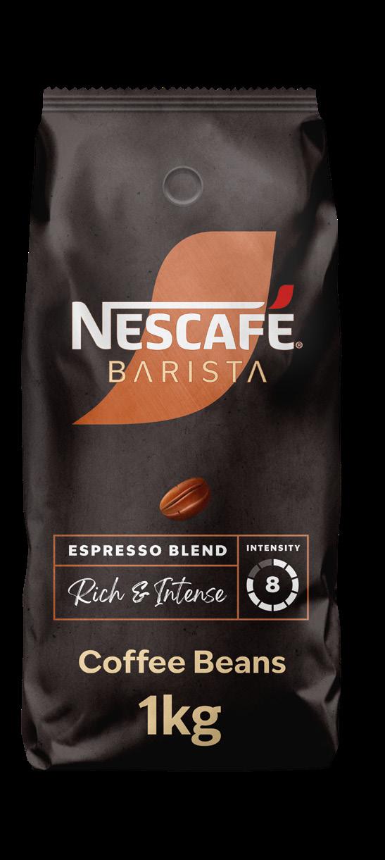 NESCAFÉ Barista Espresso Blend Coffee Beans, crafted from medium-roasted beans with delightful cocoa hints, are perfect for creating milk-based beverages such as lattes and cappuccinos.