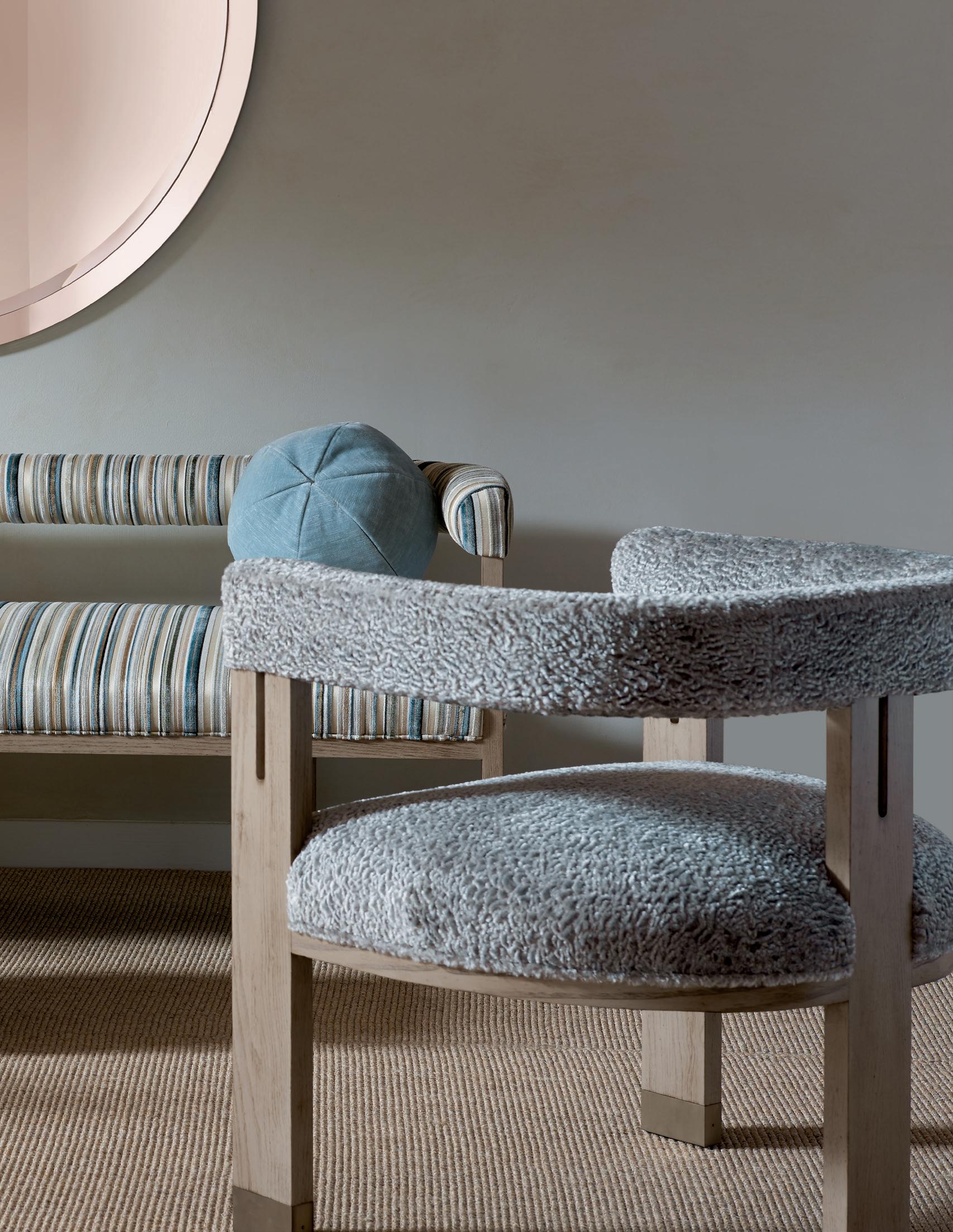 HC8522-23 Quince Tub Chair, HC8522-29 Quince Ottoman, and HC8585-70 Nina Side Table See Design Details for finish specifications, page 335.
