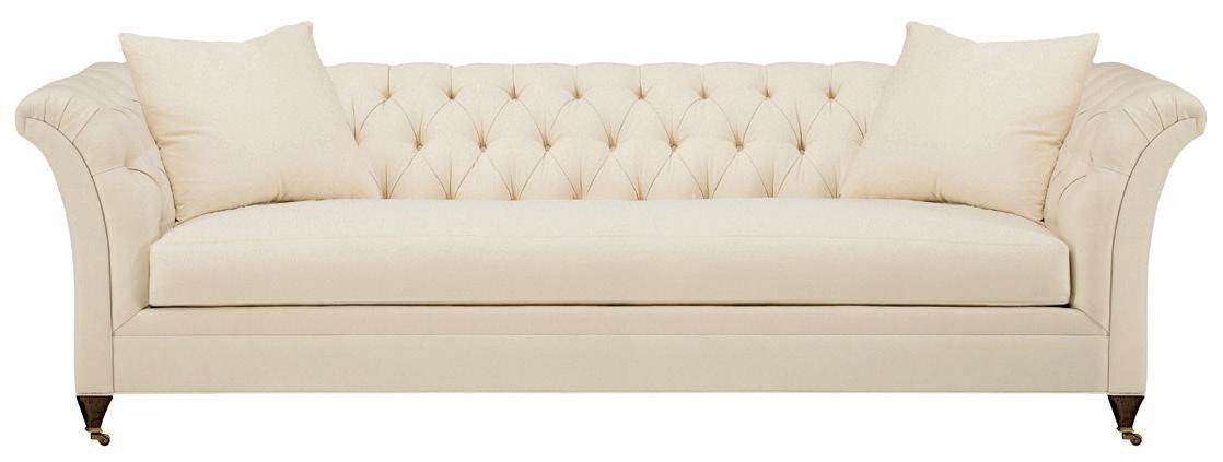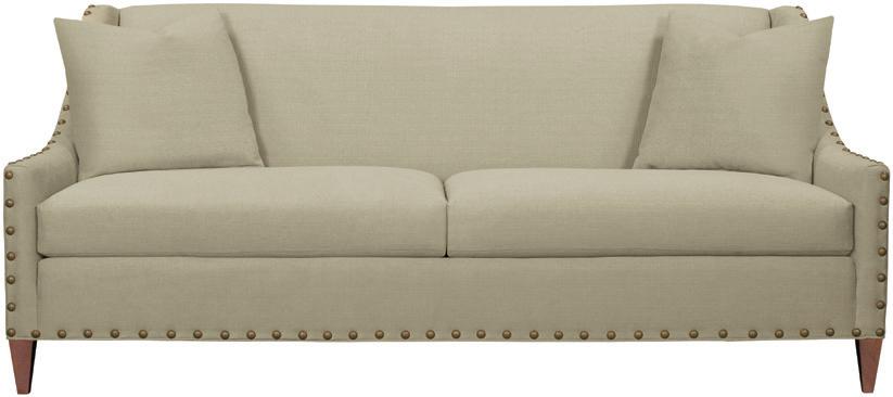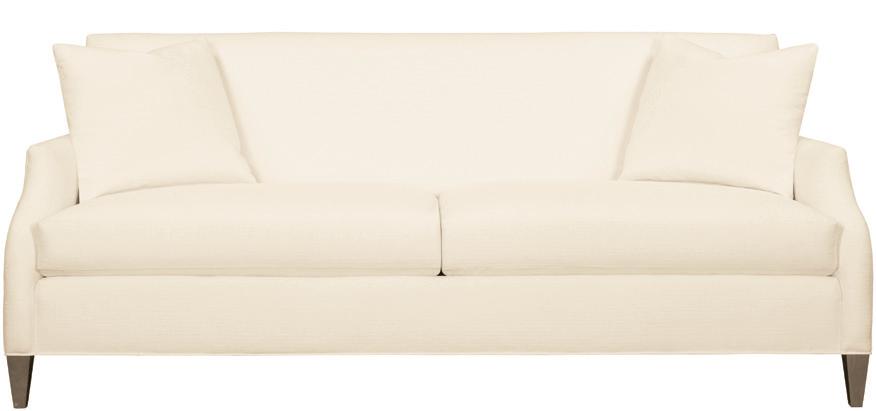Truffle is the standard finish. 3-piece Spring-Down seat cushion and 3-piece Blend-Down back cushion standard. Two 20-inch goose feather throw pillows standard in fabric. Optional NS-34 faceted nail head trim shown on fabric sofa. Standard without nail head trim. Available in small, petite and faceted nails only.
