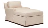 HC4220-13 Silhouettes Dressmaker Skirt Sofa shown with Narrow Track Arm, Multi-Pillow Knife-Edge Back Cushions, and Optional One-Piece Seat Cushion and Contrasting Skirt Border, HC4110-80 Silhouettes M2M® Exposed Leg Ottoman shown in Optional 38" x 60" size with 432 Exposed Legs in optional Heritage White paint without Standard Taupe Stripe and NM-09 Every 3rd Nail, HC9843-70 Campagne Dining Table Top shown in optional Antique Worn White paint, HC2467-71 Newport Pedestal shown in Antique Worn White paint, HC9843-70 Campagne Dining Table Top shown in optional Antique Worn White paint with Scrubbed Ash technique; HC4128-34 Silhouettes M2M® Exposed Leg Chaise shown in optional 36" Width, Medium Track Arm, Exposed Leg 202 in optional Dark Walnut finish, Box Edge Back Cushion with Special Construction 2" lower than back and no tee and HC6472-70 Oyster Bay Chest shown in optional Antique Worn White paint-Retired Item.