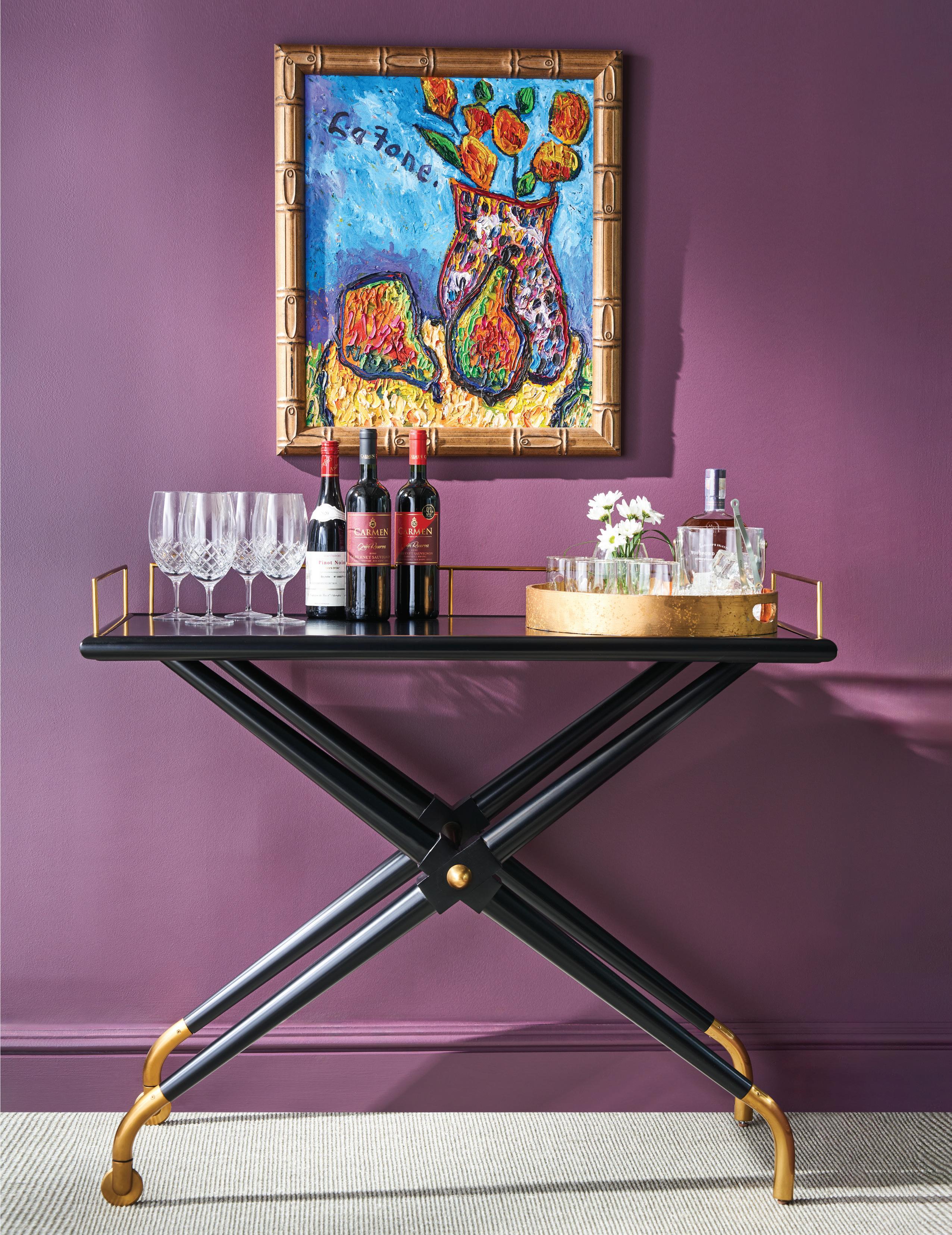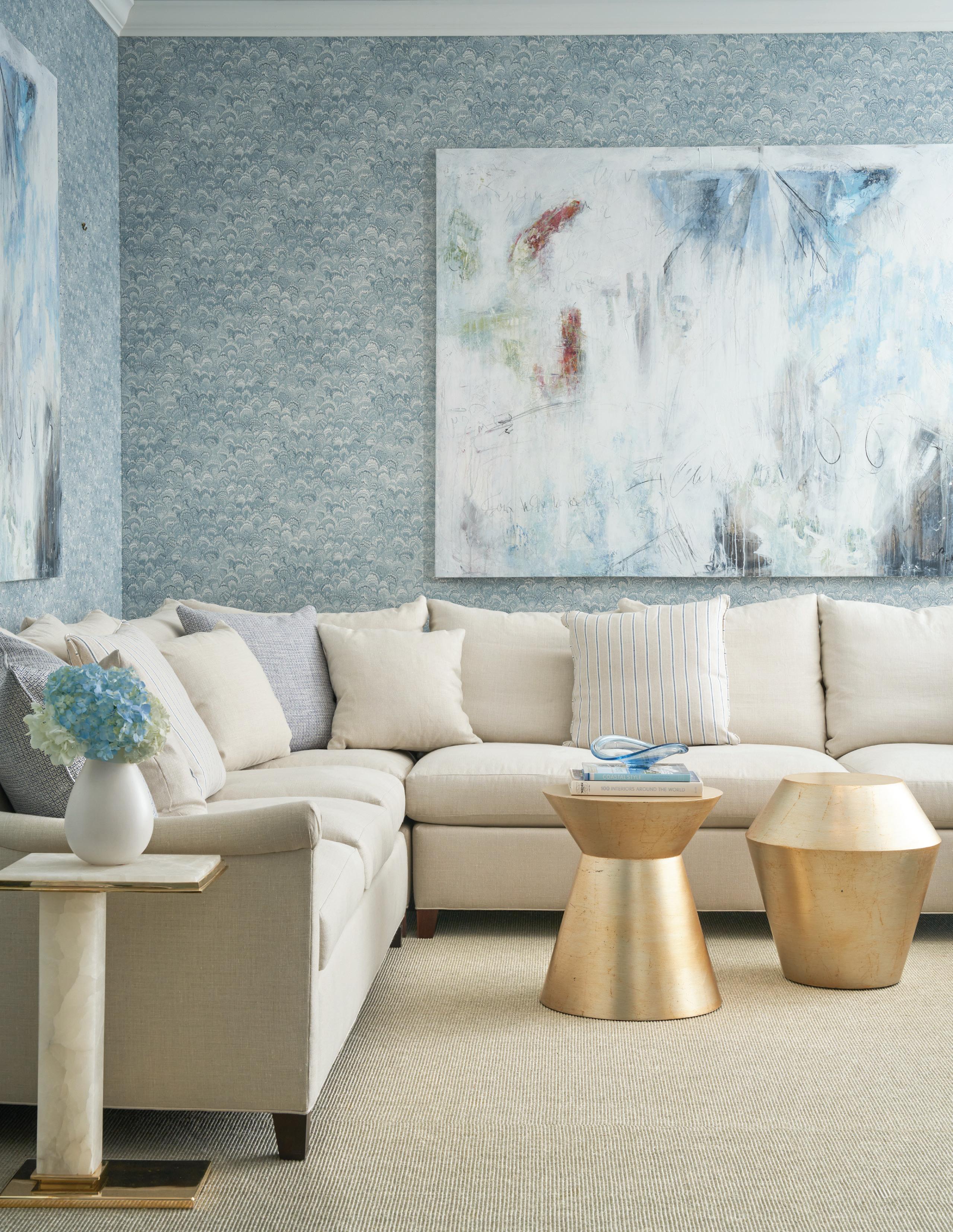 For this client as well as others, we enjoy personalizing pieces for their home. As stated, we want our client to experience that “this feels like them.” The use of custom finishes, hand decoration, decorative skirt treatments, COM fabrics and trims allow us to create a very personal sanctuary for our clients. After all, this is why a client wants to work with a designer and their team. To that point, we love working with companies that take things to the next level. Hickory Chair is always up for a challenge, like the hand-decoration on gorgeous Sofia Stools. They created a match panel Benjamin Moore® lilac lacquered paint and hand-striping in a light gold with antiqued rub through for the Choate Dining Table that perfectly complemented the Gracie wallpaper.