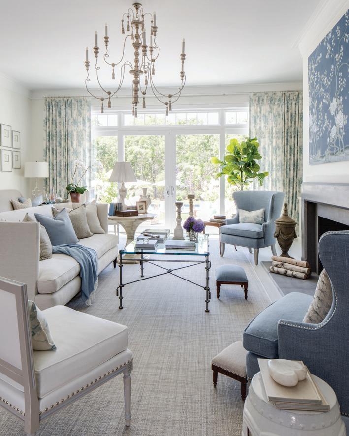 Kate shares that she has been impressed and influenced by European-mostly English and French design and style for many years. She shares a passion for all things French with Suzanne Kasler. It’s no surprise most of my favorite and most often featured Hickory Chair pieces are from Suzanne’s collection including the Woodward bench, Virginia Chair and Ottoman, the West Paces side tables and Laurent Counter Stools.