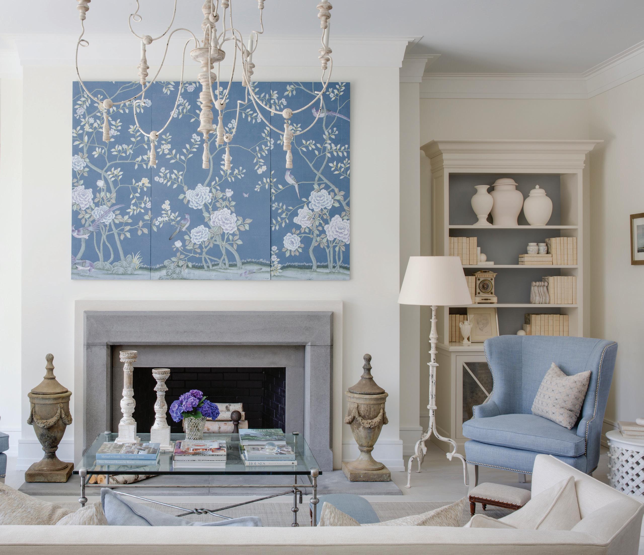 We were able to use many of our favorite vendors for this client’s home. Wallcoverings by Gracie®, DeGournay®, Phillip Jeffries® and Lee Jofa® provided amazing patterns and color palettes. We chose fabrics from Cowtan and Tout, ® Scalamandre®, Brunschwig and Fils®, Samuel and Sons®, Holland and Sherry® and Kravet®. We commissioned paintings by various artists and framed them in antique frames.