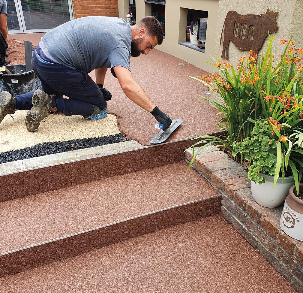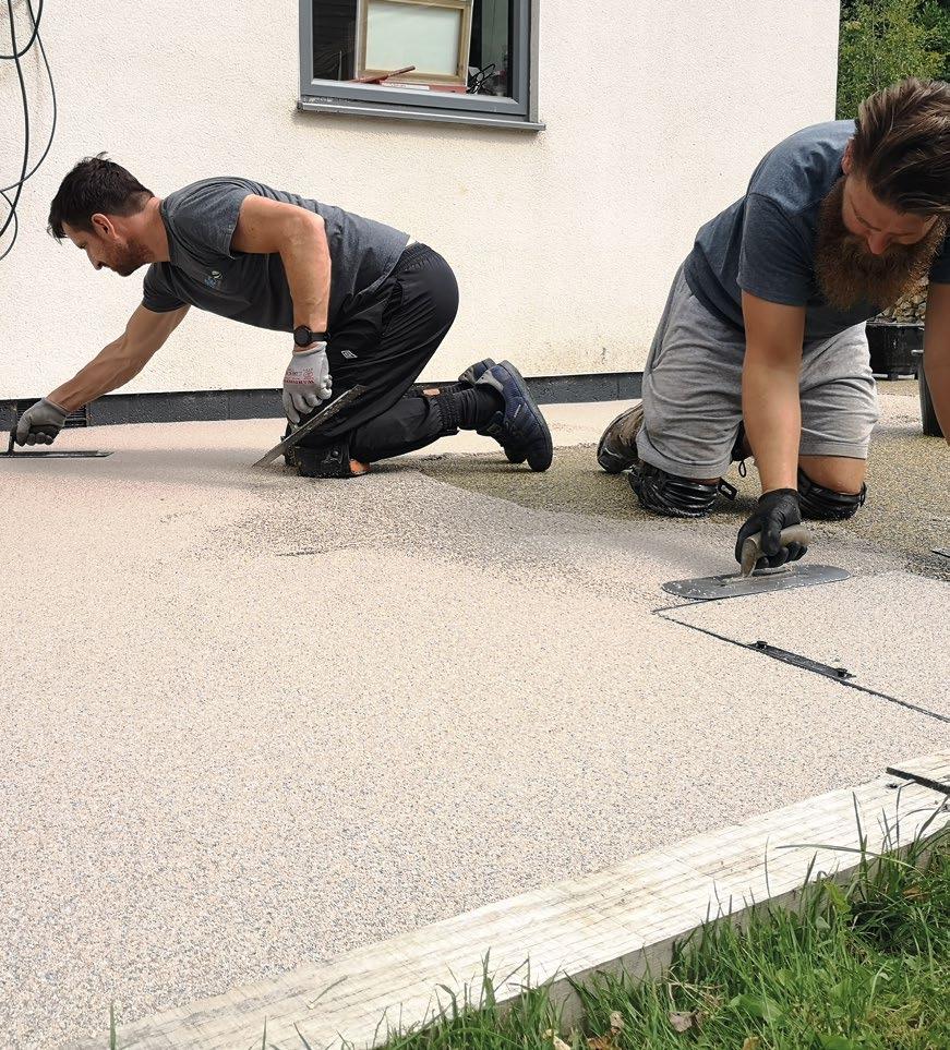 The small granules of sand are combined with a low viscosity, colourless epoxy binder, mixed together before being hand trowelled into place. Epoxies are known to be very hard and resistant to various chemical and mechanical loadings.