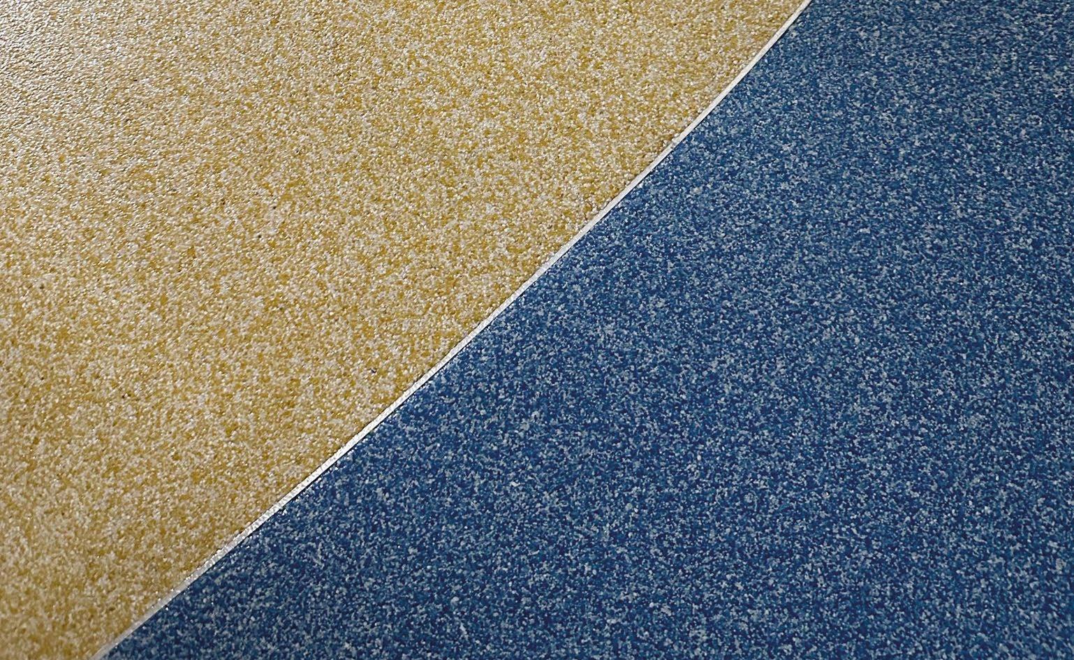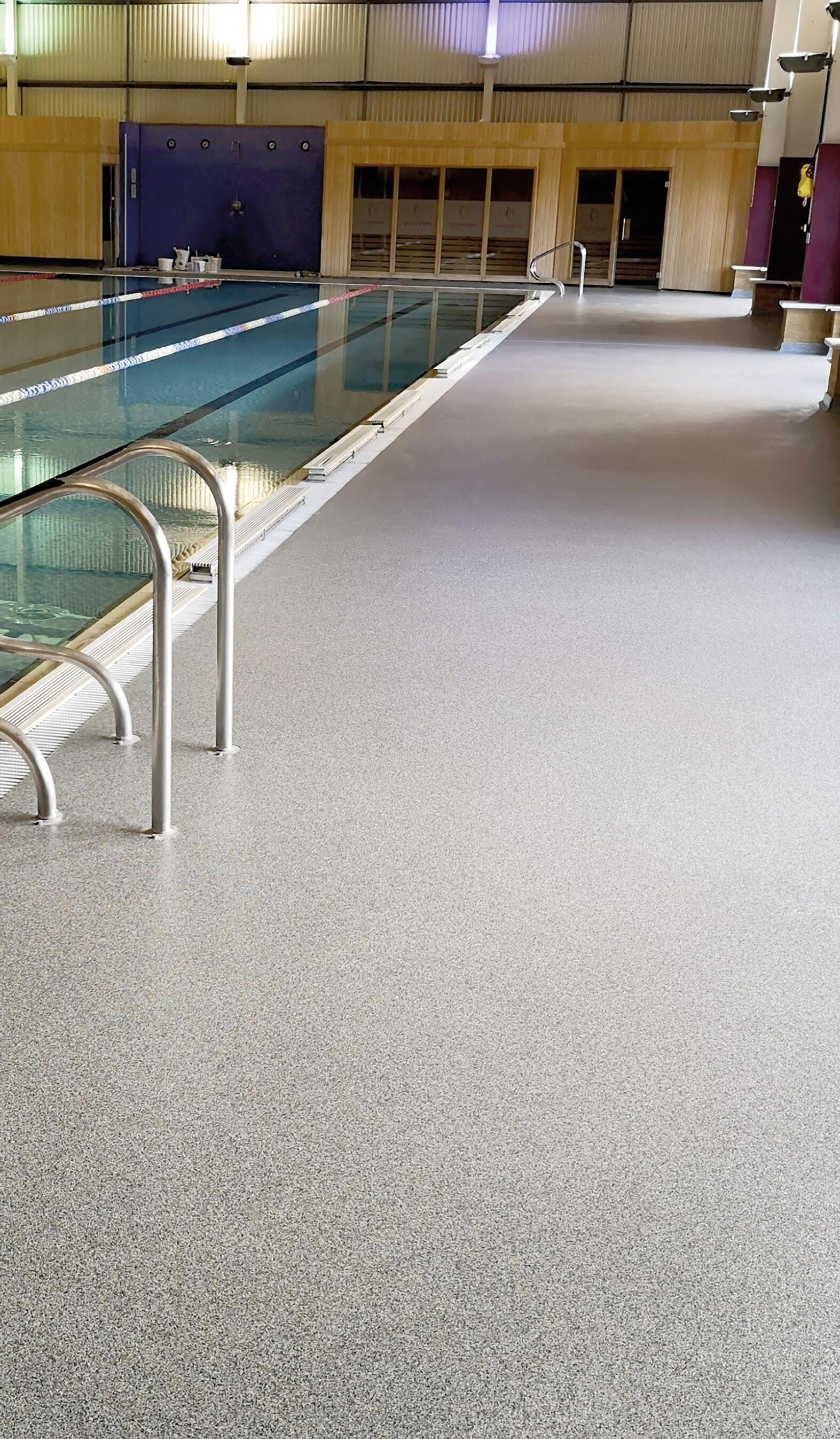 A fine blend of coloured quartz, combined with a chemical resistant epoxy binder. Pore filled with an acrylic gel and finished with a PU matt seal coat, incorporating a non-slip polymer. Generally installed at a depth of 6mm. Common uses include wet leisure pool surrounds, and changing rooms, commercial kitchens as well as retail and pubs and restaurants.