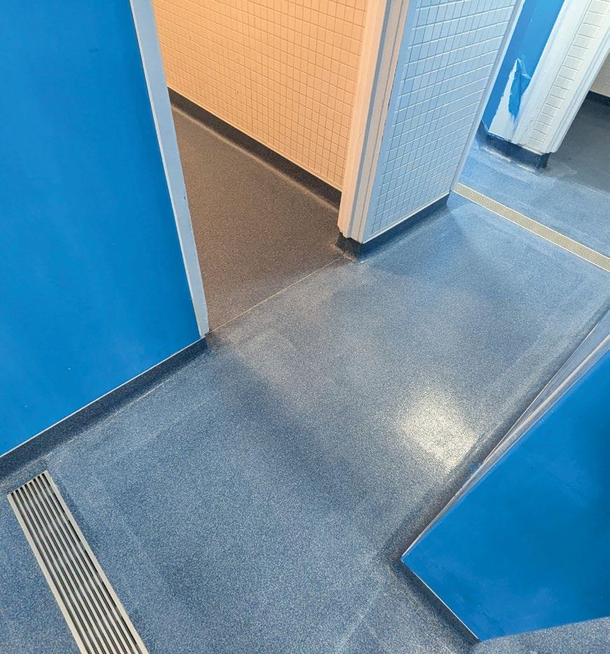 Once cured, a final matt seal coat is normally applied. At this stage, an additive can be made to improve the non-slip qualities of the surface, especially important in wet environments such as changing rooms.