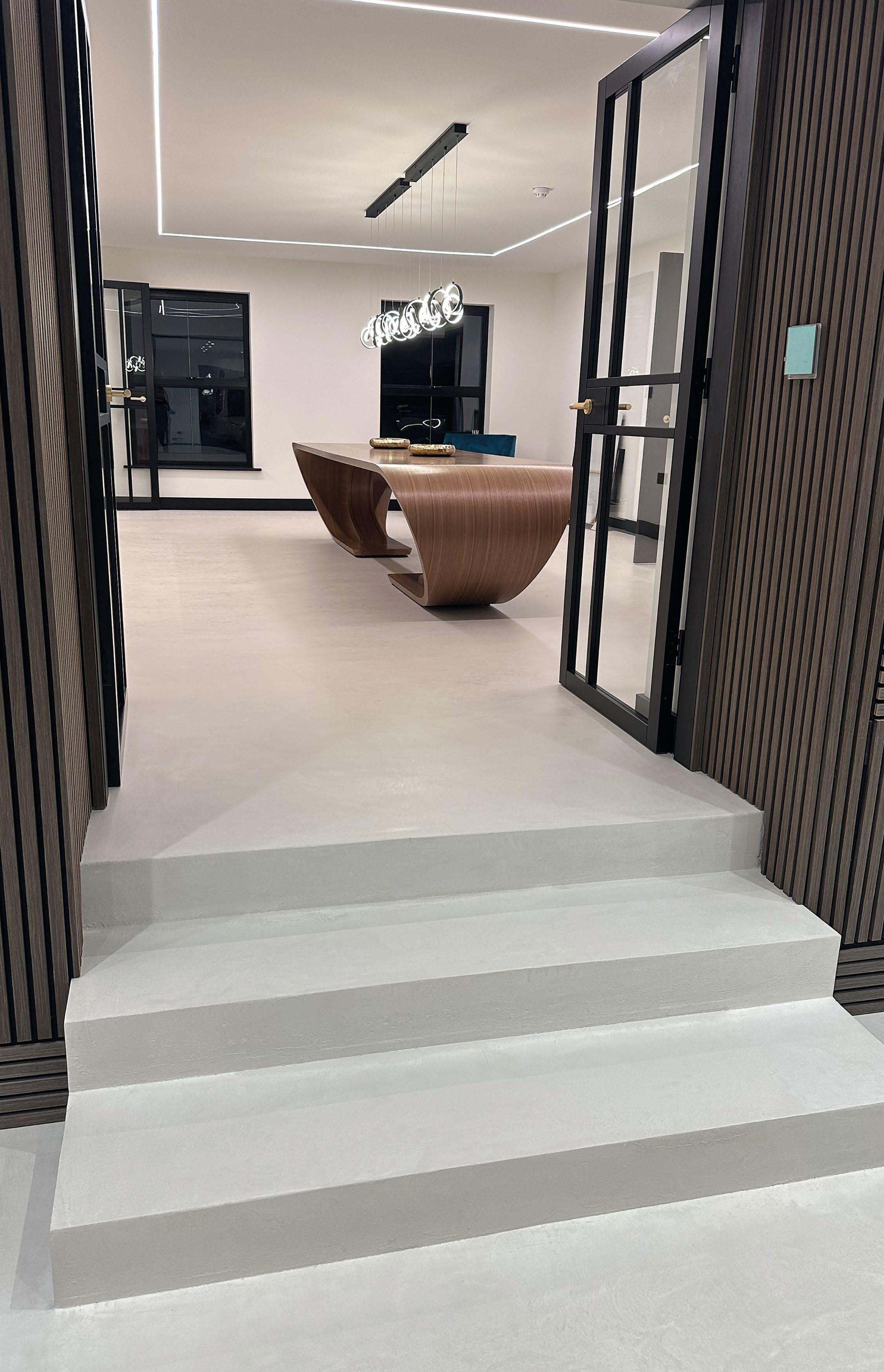 Microcement, also known as micro-screed or micro-concrete, is a polymer based cement system, which can be applied thinly to walls, stairs and floors in domestic and commercial environments. It is great for any decorative space, where you want an industrial look. As a result of strong bonding power, microcement can be applied to most surfaces including screed and tiles.