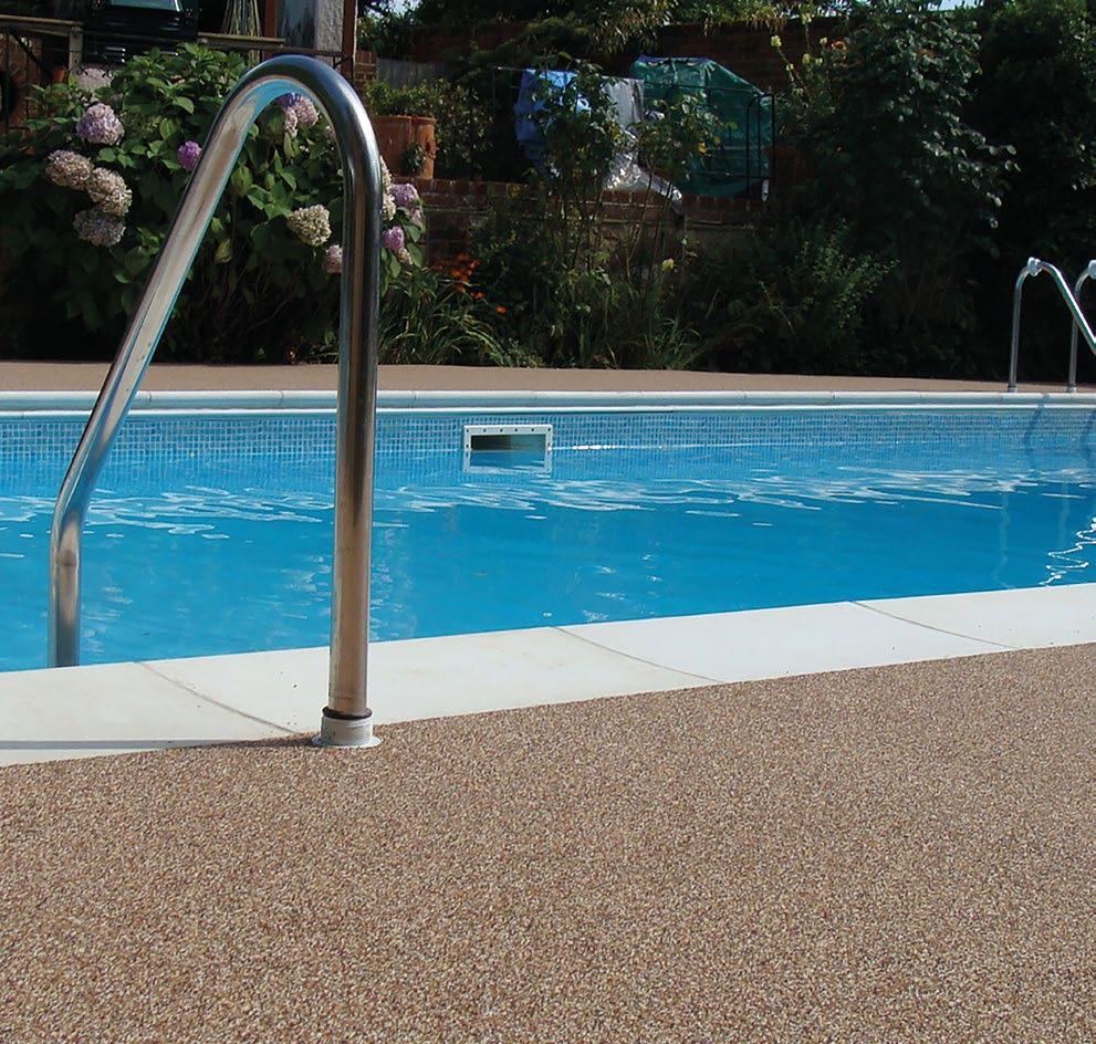 Generally installed at a depth of 2-4mm and normally applied to a clean and dry concrete base. Available in a range of colourful aggregate blends.