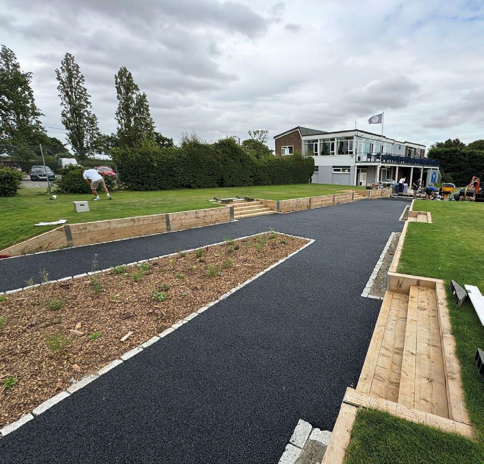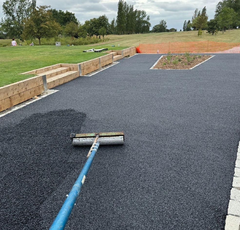 • or onto an SBR base rubber (laid at 25mm) layer which will sit on a compacted stone base.