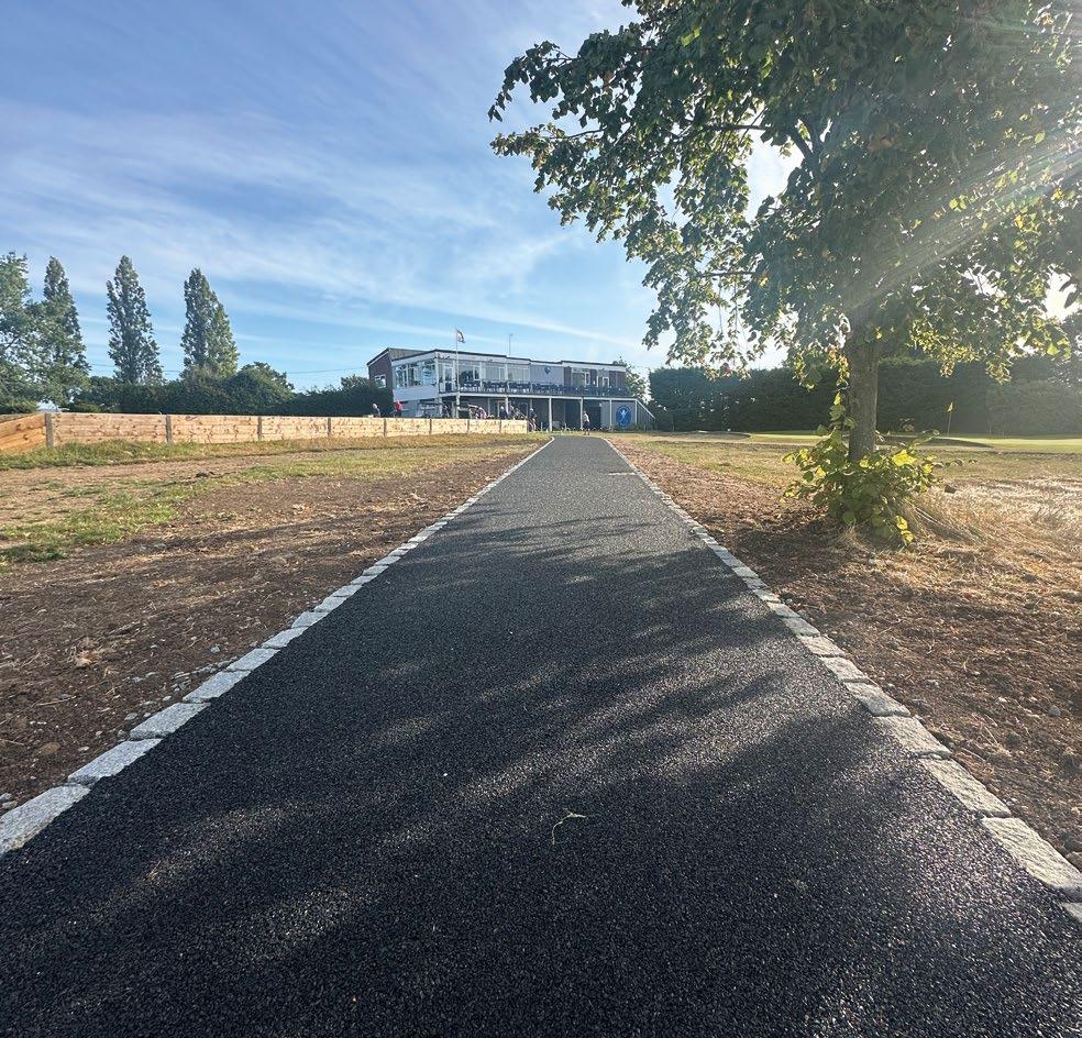Conipave RA has an element of flexibility from the inclusion of the SBR Rubber granules, so can tolerate some ground movement. Perfect when installed near trees on golf courses or woodland pathways. The blend of decorative stone aggregate and recycled SBR rubber granules gives the product strength, which is perfect for golf buggies drive on and spike shoes to walk on. Including SBR Rubber granules in Conipave RA also helps reduce the noise of spikes and buggies on the pathway.