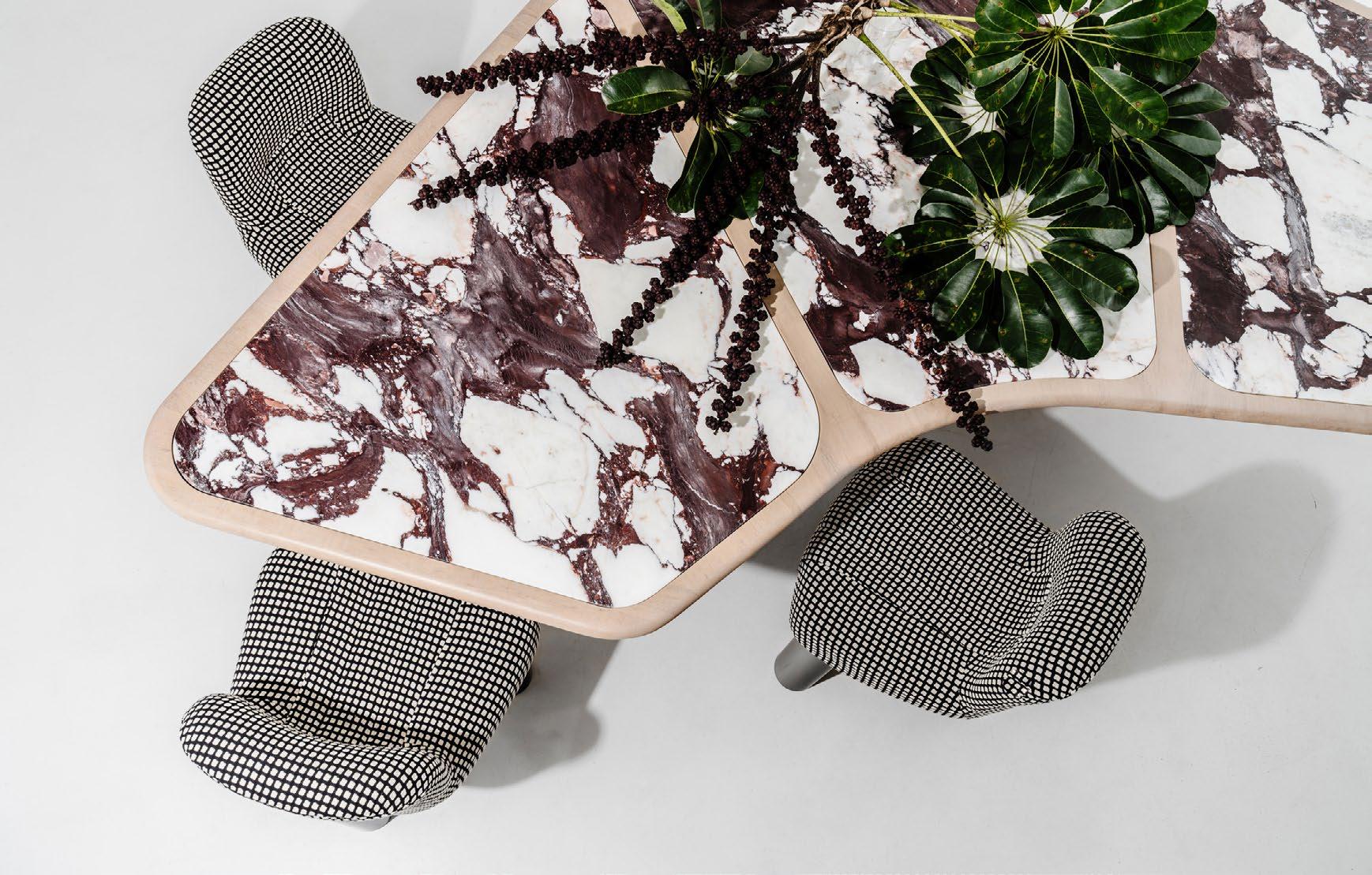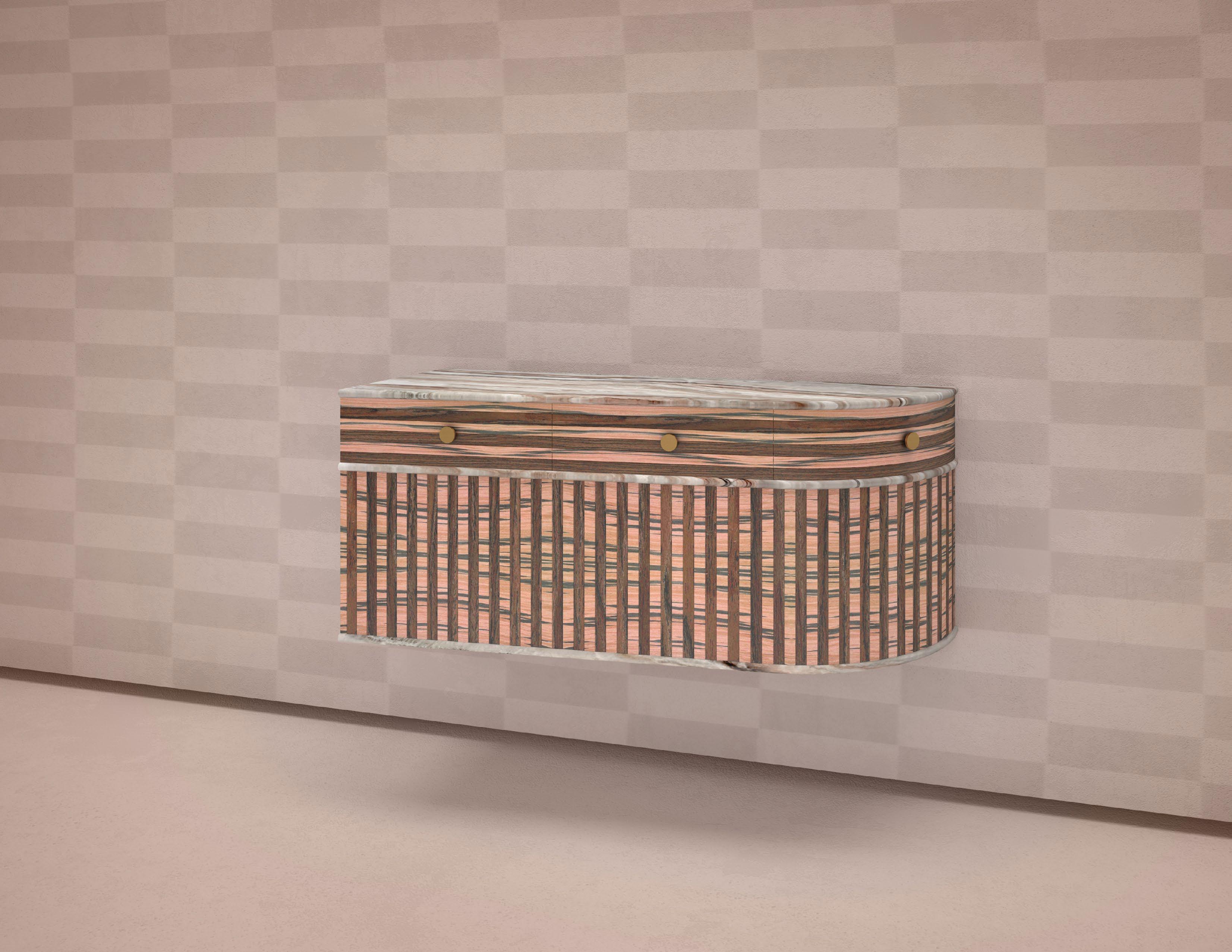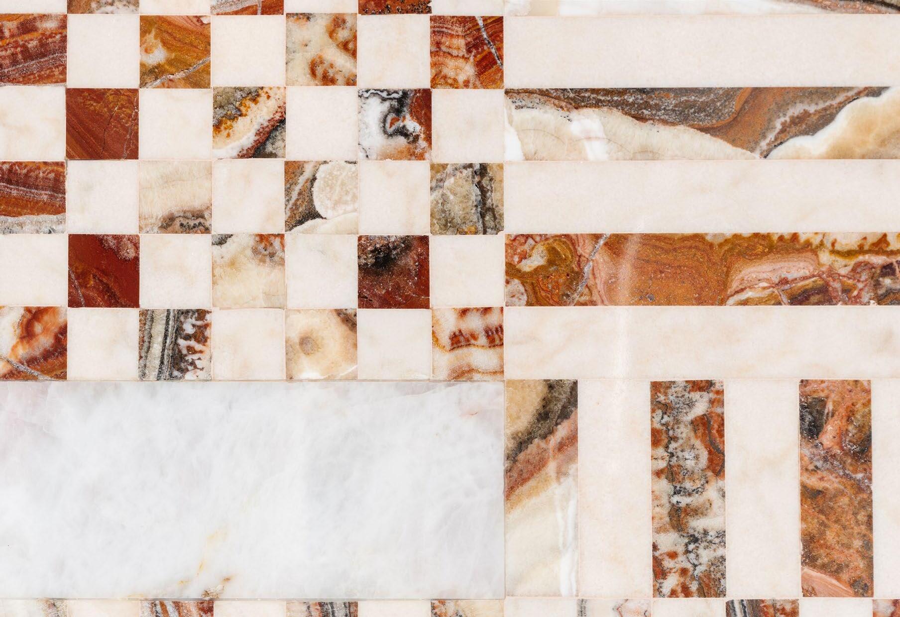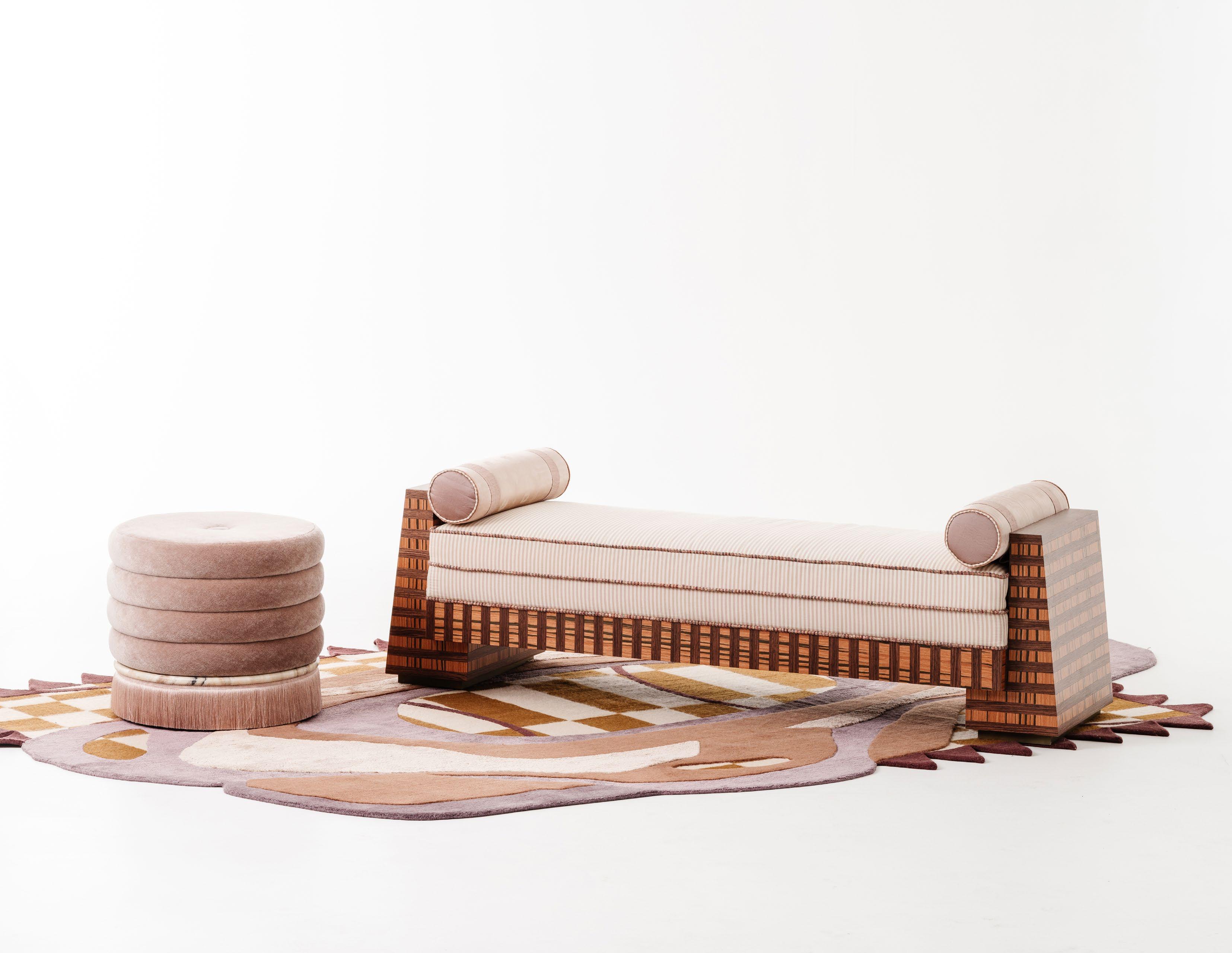 A playful and graphic layering of marble patterns that utmost depict the ALTIS aesthetics. Hues of blushes and burgundies are reflected amidst the marbles, hand-woven cotton and copper that comprise the perfect union of materiality.