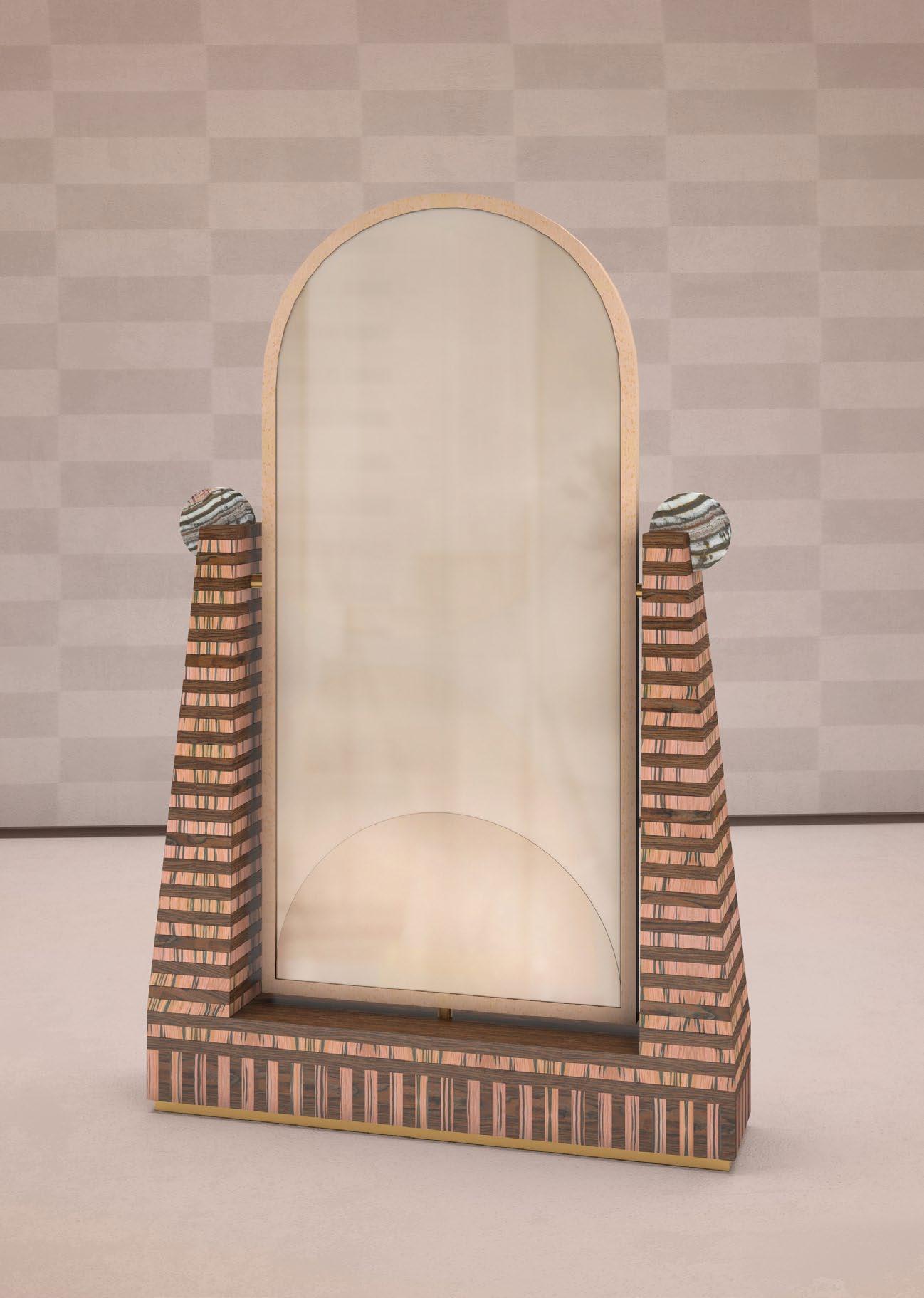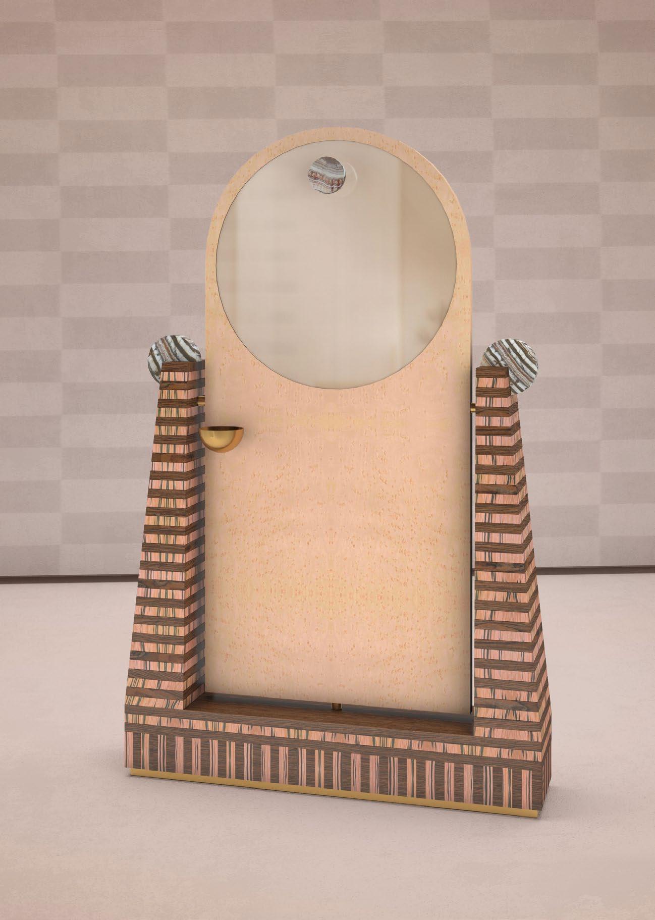 Bird’s Eye Maple, Speciality Veneer, Hand-Treated Mirror, & Brass