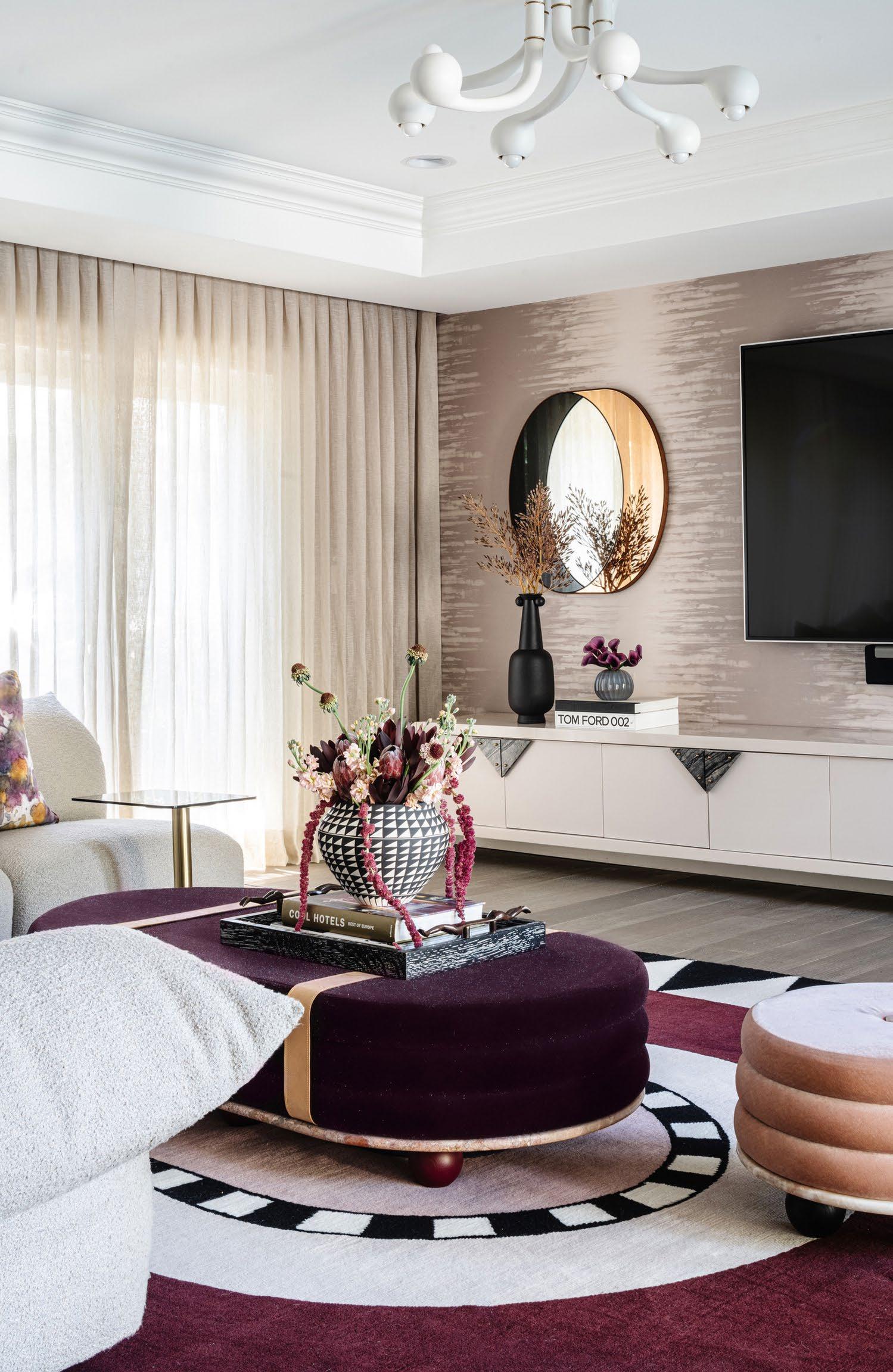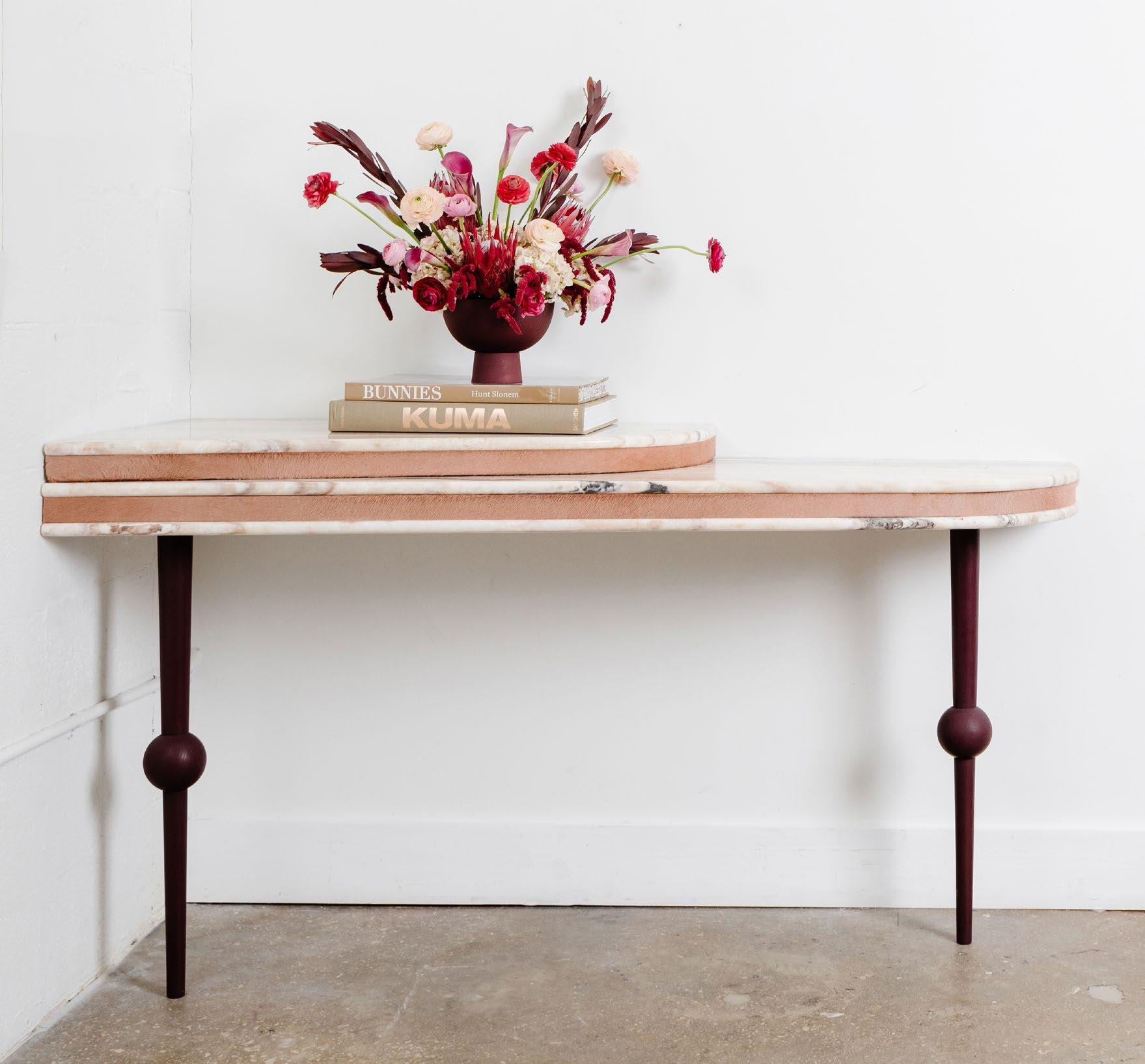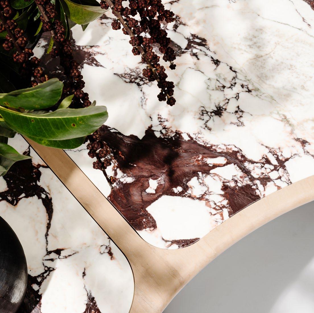 Hues of blushes and burgundies are reflected amidst the marbles, leathers and metals that comprise the perfect union of materiality.