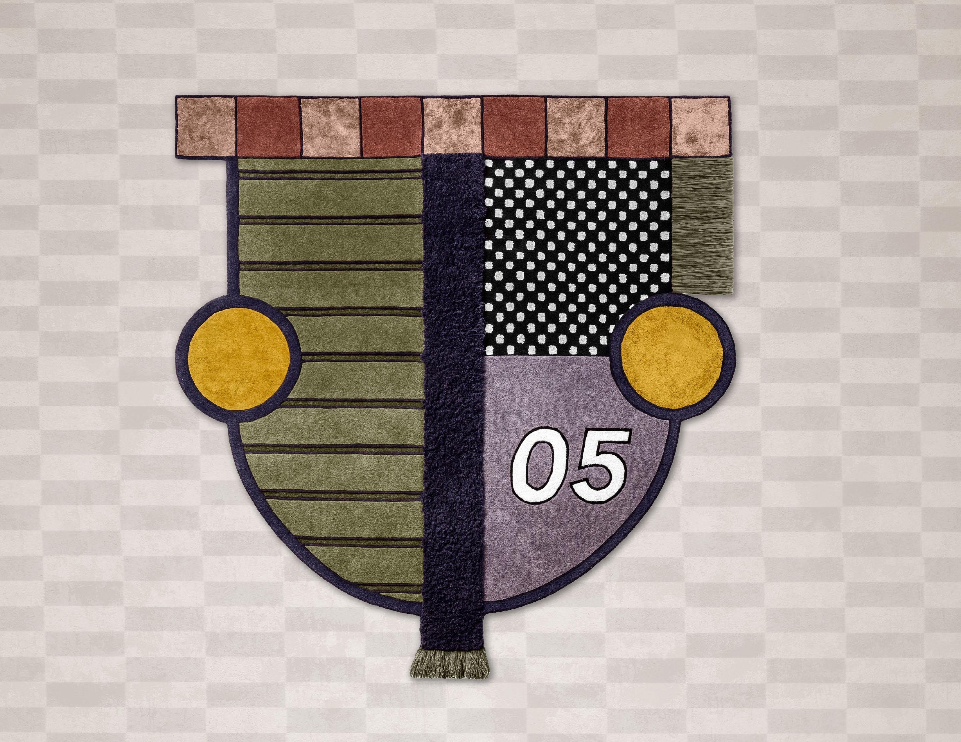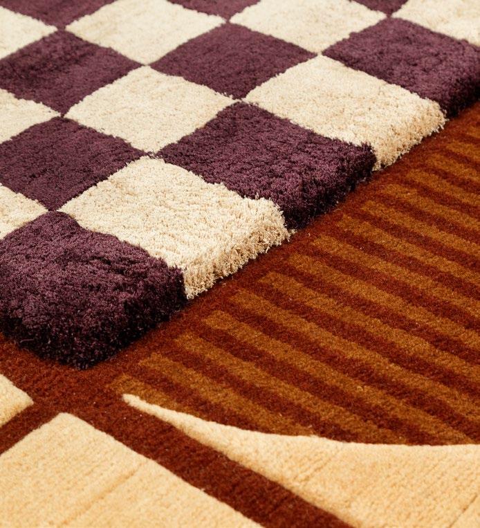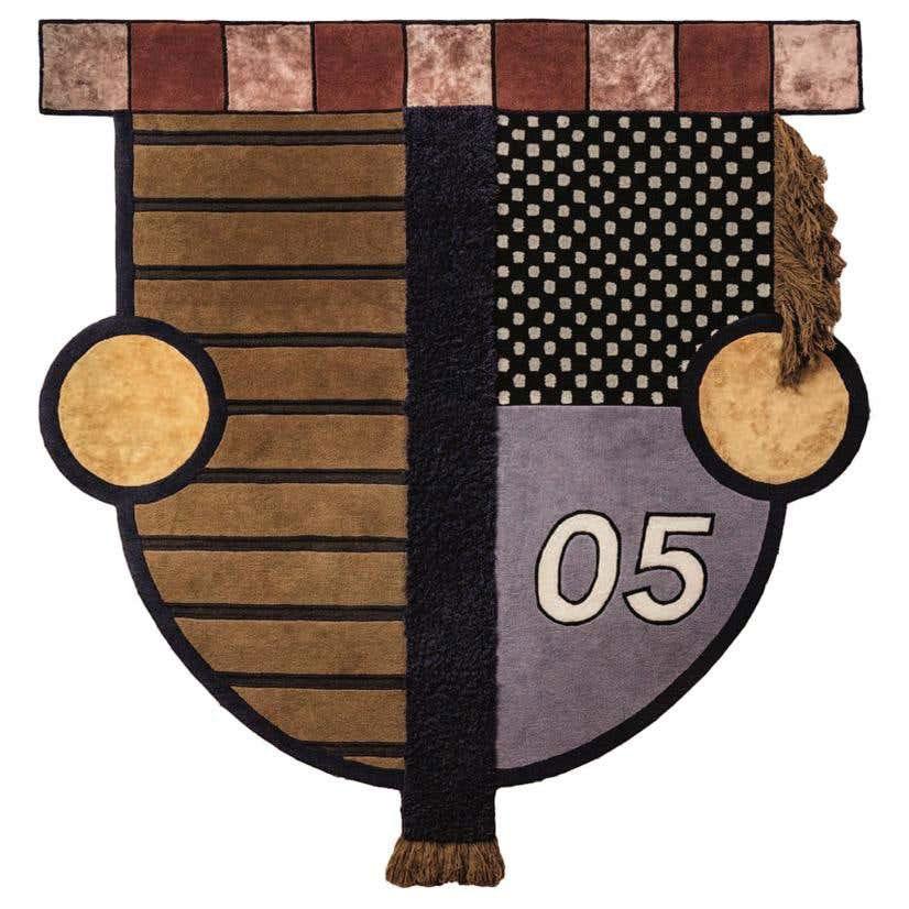 A geometric play of the team crest. Hand-knotted wool and silk with touches of leather.