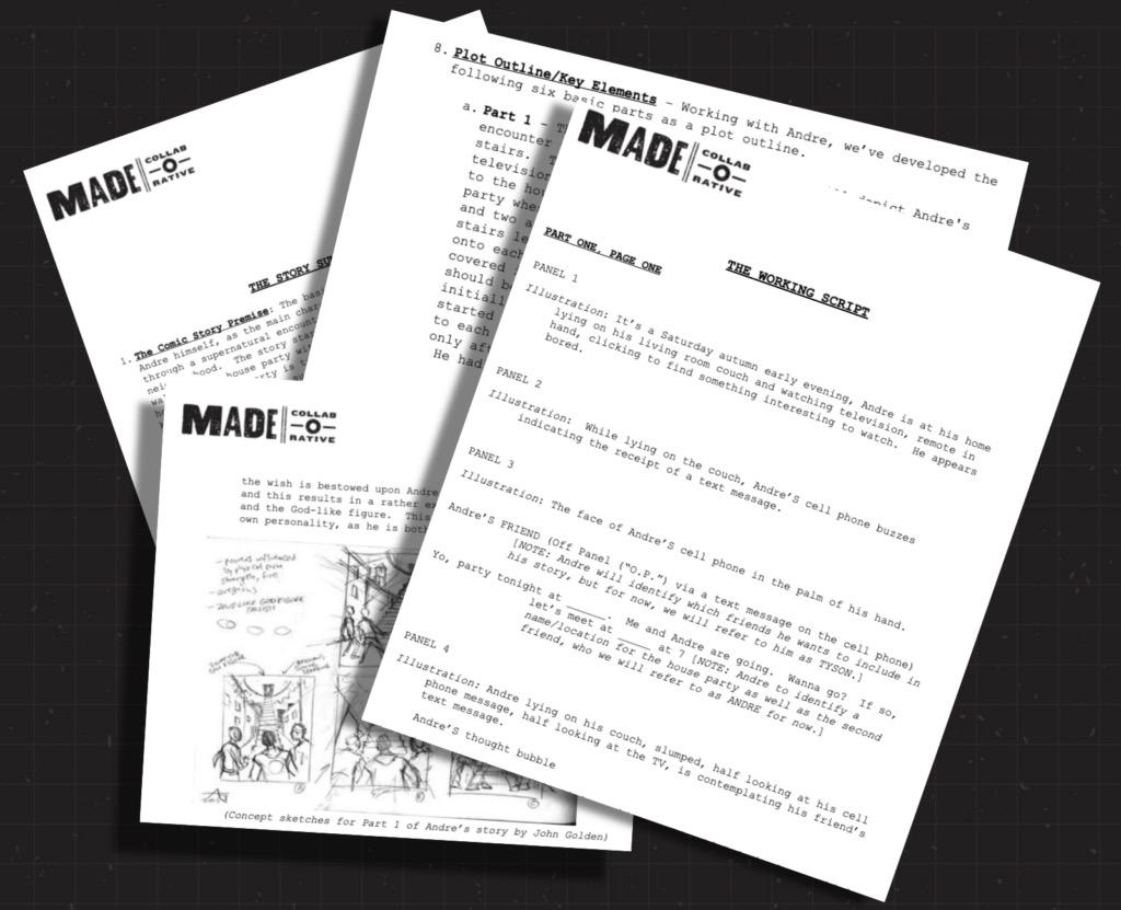 Presenting the comic book this way created two opportunities for the production team. First, it allowed us to incorporate elements of Made Collaborative’s amazing genesis into the comic itself. Because, as fascinating as the kids’ stories are, just as appealing is the story behind the story. That is, the story of the kids who created the stories.