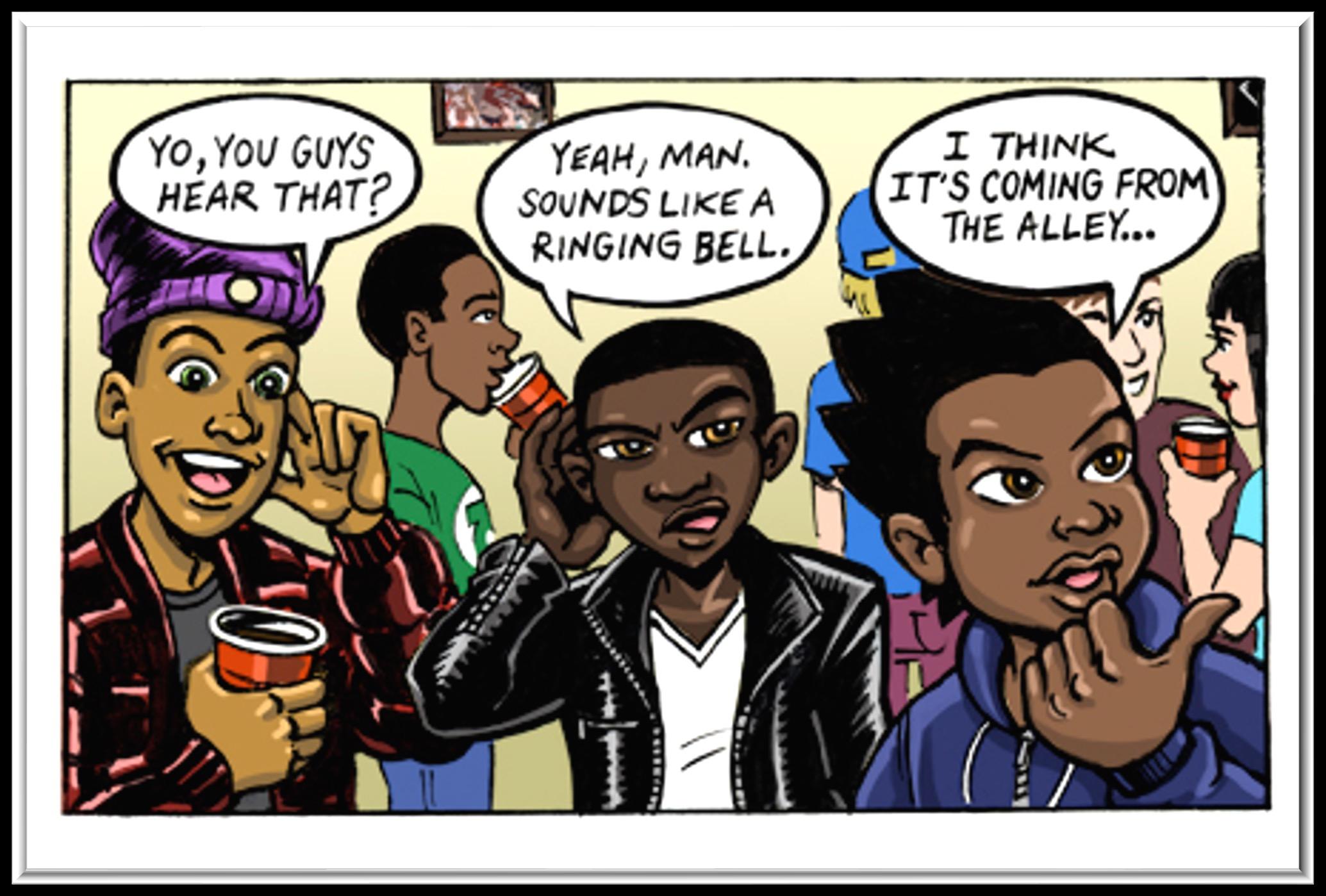 “So, we go to this party, and it’s cool. Me and my boys arrive, and we see some people we know, and some we don’t, but everyone is hanging out, and the vibe is cool.”