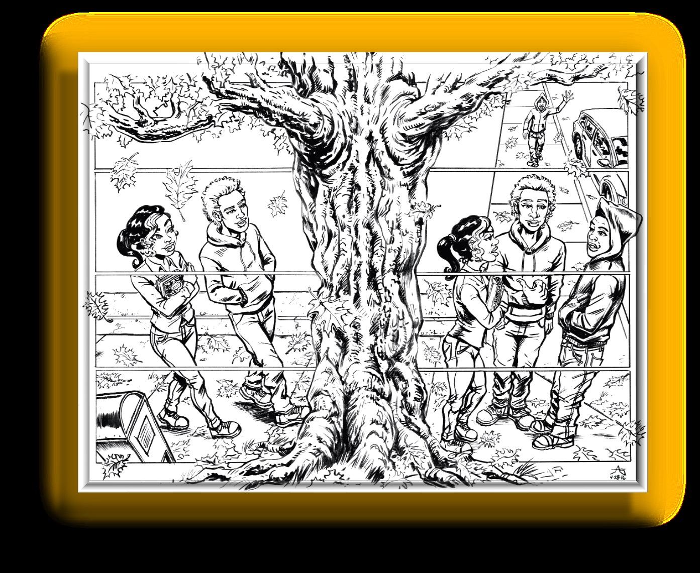 Armed with the initial characters flushed out and more fully developed, Len and Jimmy began developing a working manuscript along with a team of artists that had been recruited by Jimmy, including John Golden, Dan Dougherty, Manny Dominguez, Eric Nyamor, Andrew Dimitt and Kanila Tripp. It was this group that would work together to bring those original comic ideas to life in the form of one single comic narrative that we would eventually name as “The Back