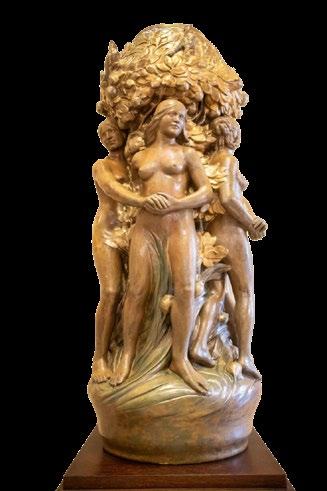 OLYAN ÉRTÉKES MŰTÁRGYAT mutattak be szeptember közepén Budapesten, mely nek egy évszázadon keresztül a puszta létezése is kérdéses volt. A táncoló nőala kokat ábrázoló Zsolnay kerámiát Pécsett készítették, majd az 1906-os Milánói Világkiállítás tűzvész után újjáépített magyar pavilonjának egyik legfontosabb dísze lehetett. A tárgy nemrégiben egy francia aukciósház kínálatában tűnt fel sok-sok év lappangás után. Két magyar Zsolnay gyűjtő, Szabó András, a Reso Art Alapítvány alapítója és Törő István, a Virág Judit Galéria társtulajdonosa összefogott és közös erővel hazahozták a páratlan értékű kerámiát.