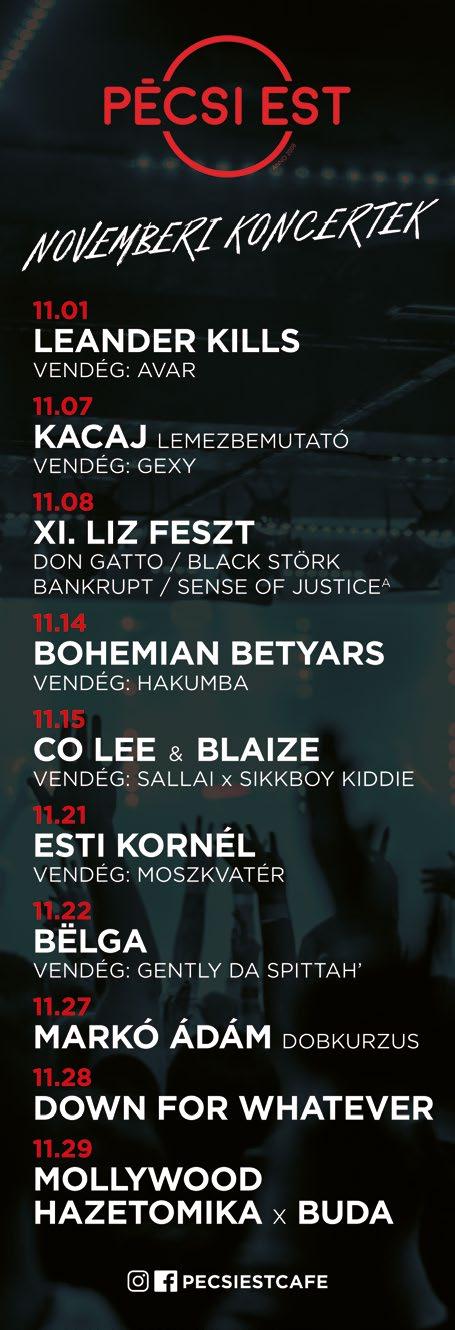 KAPCSOLAT: info@madeinpecs.hu, 06-20-598-0000 HIRDETÉS: Bite Orsolya bite.orsolya@madeinpecs.hu, Tel.: 06-20-3436000 KIADJA A MADE IN PÉCS KFT. (7621 Pécs, Kazinczy utca 1.) FELELŐS KIADÓ: Gellai Gergő SZERKESZTŐSÉG: 7621 Pécs, Király utca 35. NYOMDA: Duplex Rota Nyomdaipari Kft. (7631 Pécs, Északmegyer dűlő 4.)