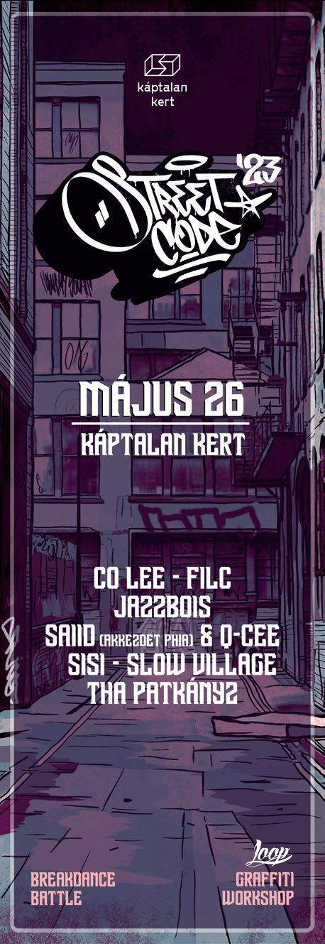 mindig zseniális Hiperkarma (képünkön) áll színpadra, a beugró elővételben 4500, a helyszínen 5500 Ft-ba kerül. Csak a teljesség igénye miatt jelezzük, hogy a nyitóhétvége utolsó napján a Bagossy Brothers Company lép fel, de a koncertre elővételben elfogyott az összes jegy. Május 26-án Street Code 2023 címmel egésznapos, már délután startoló