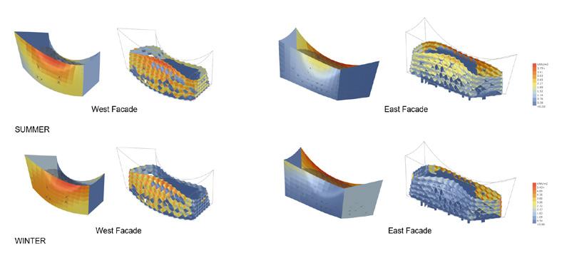 In this project, I assisted with completing the 3D digital model in both Rhino and Revit, assisted with developing the Grasshopper script to place various panels onto the facade, and created diagrams like the ones shown to the left and below.
