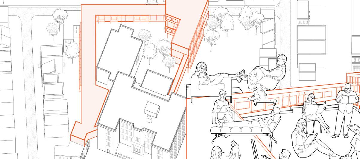 Some units share a balcony space which provides a strong connection to their neighbors. Most people who live in New York do not have a strong relationship with their neighbors next door to them let alone anyone else in the building. This platform is an attempt to facilitate interactions between residents on the horizontal plane.