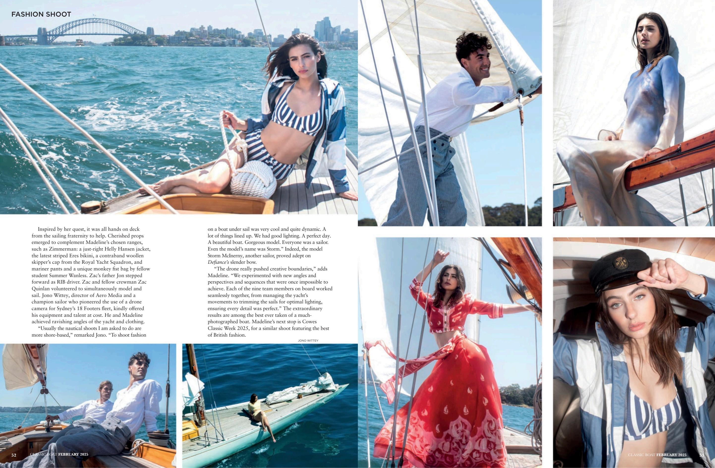 All Decked Out, featured in Classic Boat UK's February 2025 issue, is a celebration of both the past and present, weaving the storied traditions of maritime life with contemporary fashion trends. From classic Breton stripes to avant-garde designs, this issue pays tribute to the creativity and innovation that define the intersection of fashion and sailing. Each photograph is a testament to the timeless appeal of nautical style, capturing the spirit of adventure and sophistication within the yachting lifestyle. Shot aboard the iconic Australian classic yacht Defiance, All Decked Out showcases the captivating beauty of nautical fashion, elevated with breathtaking aerial perspectives by drone specialists Aeromedia, serving as a true testament to its enduring legacy.