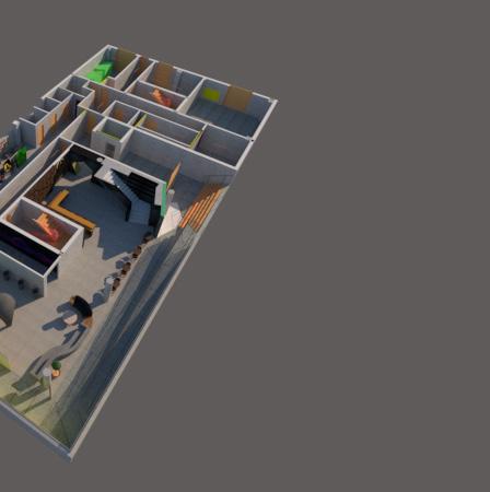 The Odyssey of Austin is a rotating chef kitchen & gallery space located in Waterloo Central. The program is one of Waterloo Greenway Concervancy’s several phases to create a sustainable, cultural destination that enriches the Austin community. The concept for this space is inspired by the idea of time travel as it relates to the timeline of Austin, TX. Warm colors & rustic materials will be implemented for the past. Vibrant colors & modern materials will be implemented for the present. Cooler colors & reflective materials will be implemented for the future.