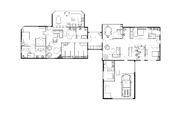 The Ranch is a multi-generational and aging in place home in Blanco, TX, that is inspired by the Texas Longhorn. This home combines tradition with modern amenities to provide accessibility for all generations. Locally sourced materials and sustainable practices were used to create a harmonious home that features open floor plans, ample natural light, and outdoor living spaces with stunning views. The gathering spaces are designed for family gatherings, and the home includes a garage with living quarters for extended family. The Ranch is a welcoming and functional home that offers accessibility, comfort, and sustainability for generations to come.