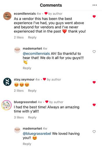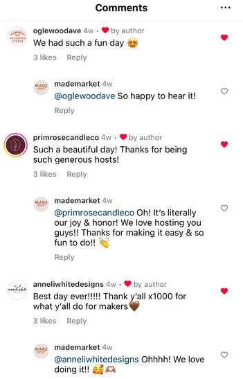 Our 22.7k followers aren’t just followers, they ENGAGE. They trust us and love to interact with everything we share to our feeds. In partnership with Made Market, our team will create content that promotes Jeni’s as the ultimate supporter of local artisans and small businesses. We'll tag you in posts, stories, and - of course - thank you as an event partner leading up to the holiday market as well as our market recap posting. Finally, please let us know if you have any addItional Jeni’s content you would like to share with our audience in the lead up to the event. We'd be happy to post it to our page on your behalf!