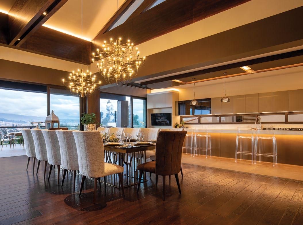Esta altura ofrece una jerarquía a la sala, el comedor y la cocina, los cuales se conectan con una pérgola exterior por medio de grandes ventanales que proporcionan abundante iluminación y una agradable vista.
