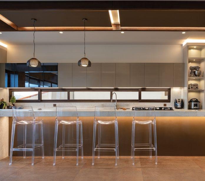 Los detalles de iluminación de la isla, y de los módulos de vidrio brindan una sensación muy sobria, que se disfruta sobre todo en la noche dando ambiente a una cena entre amigos.