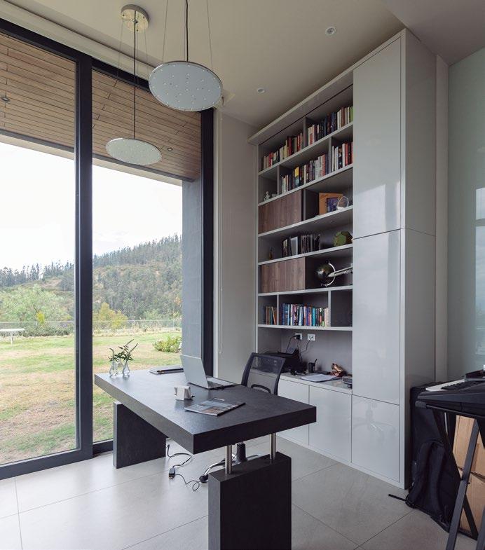 En la planta alta los cuatro amplios dormitorios convergen en la sala familiar que tiene la vista hacia el Ilaló y el valle de Tumbaco, que ofrece una sensación de calma y relajación.