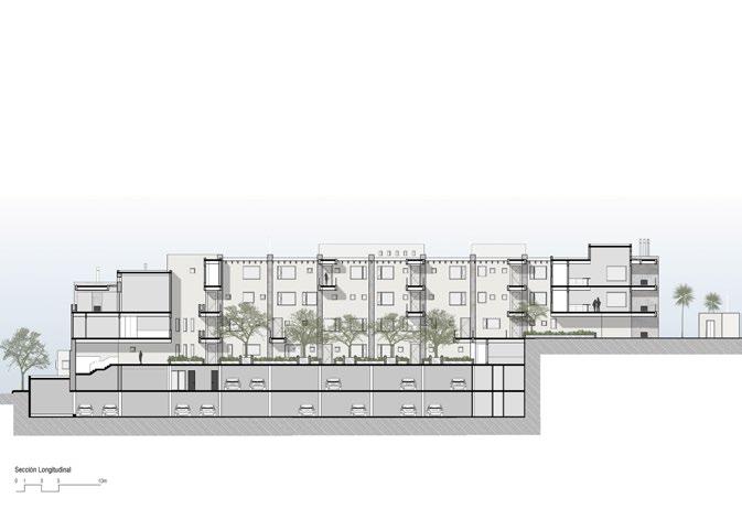 La volumetría del edificio se conforma por cajas que rotan para poder dar luz, vista y espacio a las macetas de los pisos inferiores.