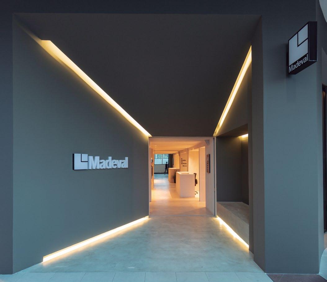 El concepto inicial del nuevo showroom de Madeval parte de la idea de un museo: área central de distribución y circulación que conduce a diferentes ambientes independientes donde se exponen elementos de diseño.
