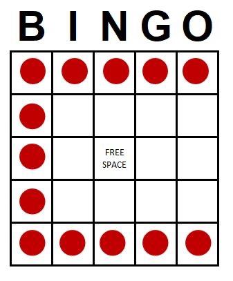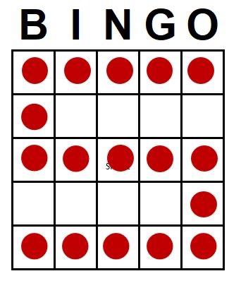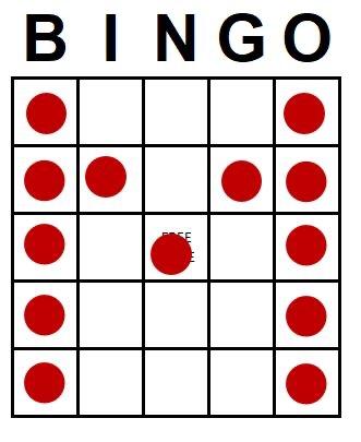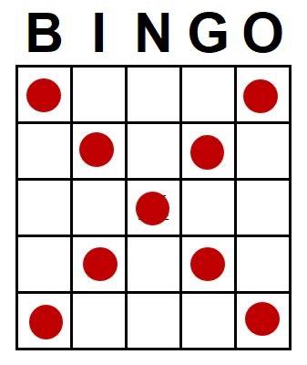 4. The OBJECTIVE OF BINGO is to have your letters/numbers called and marked off in a straight line of five numbers either horizontally, vertically or diagonally or in a special pattern/sequence as shown in the picture by each game. All games are played in the way they are displayed in pictures. No upside down, sideways, etc.
