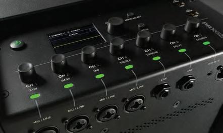 PRX ONE’s dual-mode mixer offers fast control with Channel Strip and Mix modes, triple-tier DSP that can be managed by users of any skill level, full-colour LCD access to settings, and LED metering for quick visual feedback.