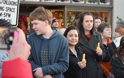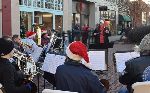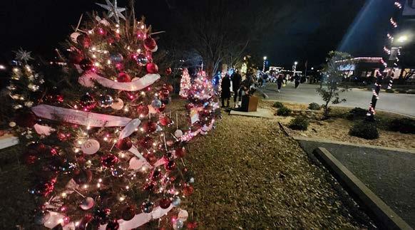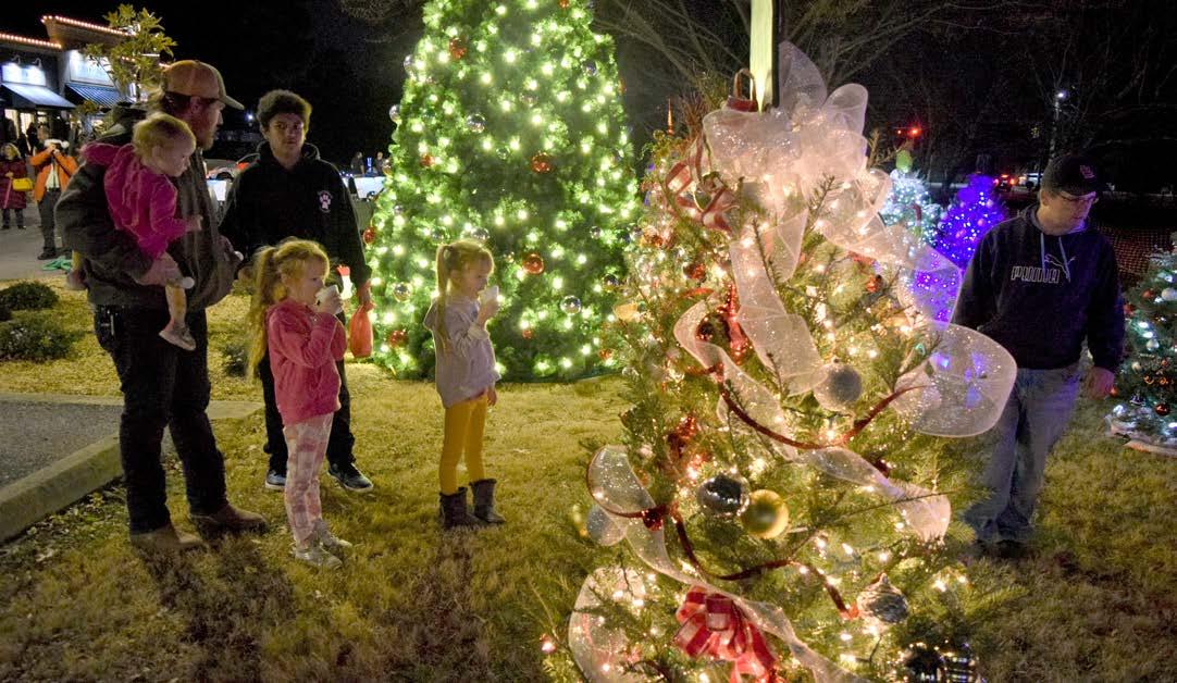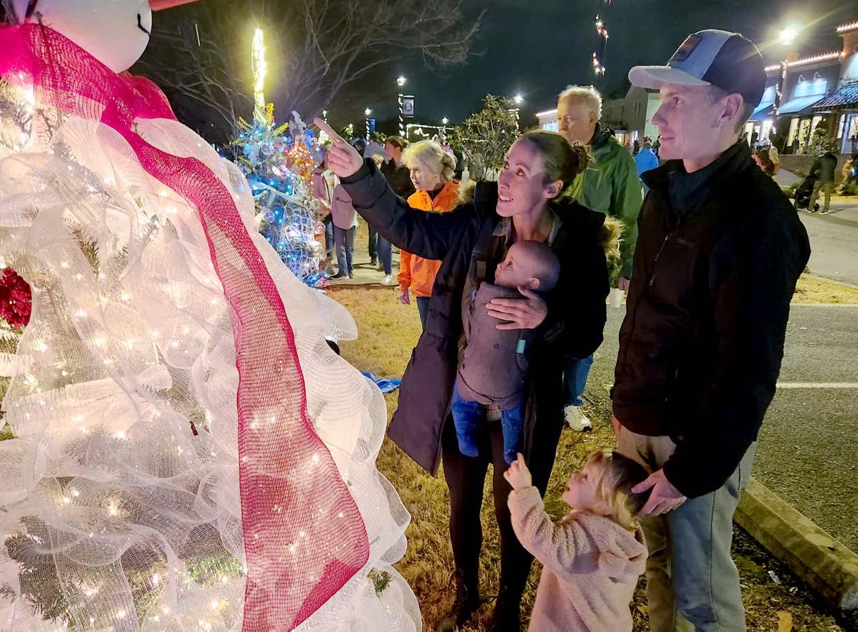 A DOWNTOWN CHRISTMAS - Christmas in downtown Madison kicked off last month with the annual Polar Express Christmas Tree Trail lighting and Wassail Fest. Businesses and organizations sponsor the trees and decorate them for the annual Christmas season display along Main Street. Michael and Sarah Crouch, with their children Charlotte and Emerson, are pictured above admiring one of the uniquely decorated trees along the trail. Prior to the tree lighting, the annual Children’s Lantern Parade brought children down Main Street to the front steps of 16th Main where they were read “Polar Express” sponsored by the Madison Public Library. Throughout that evening, Rotary Club of Madison served tasty hot chocolate and cookies at Main Street’s western end, while the Madison City Community Orchestra impressed everyone with beautiful Christmas music. After the reading of the Polar Express, several children got to tell Madison Chamber Executive Director Michelle Epling what they wanted for Christmas before joining Madison Mayor Paul Finley in officially lighting the 2022 Polar Express Christmas Tree Trail. After the tree lighting, Madison’s downtown merchants presented the second annual Wassail Fest. Main Street Cafe owner, Tammy Hall, launched the idea as an added way for those attending the tree lightings to visit all the downtown businesses.